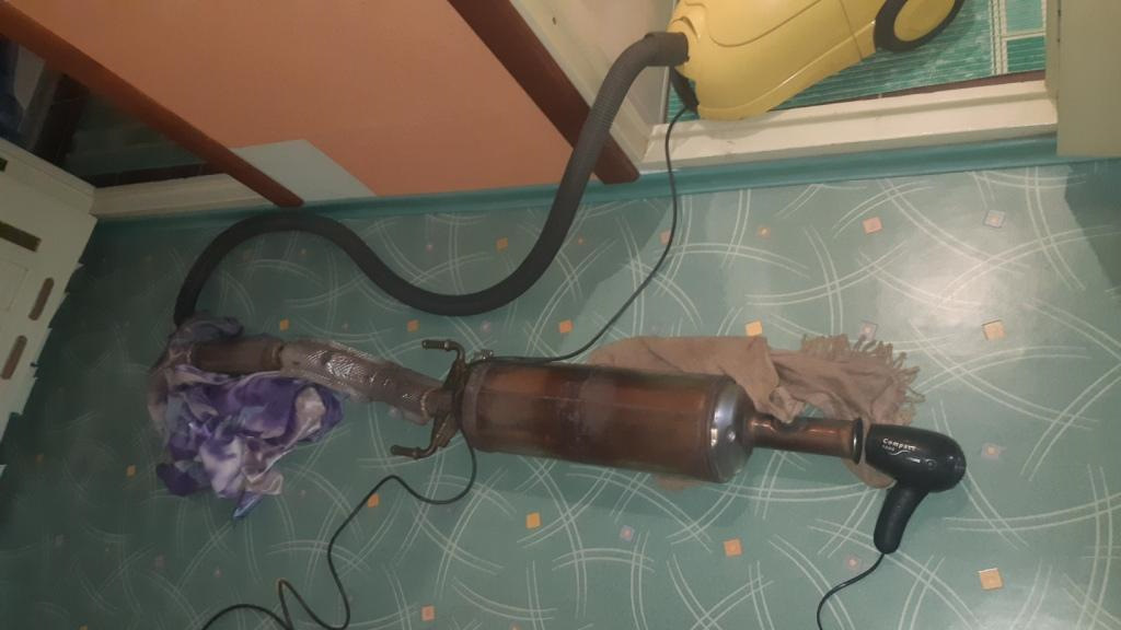 Вначале фен невозможно было близко приставить к трубе. Но через полчаса его уже засасывал пылесос в трубу.