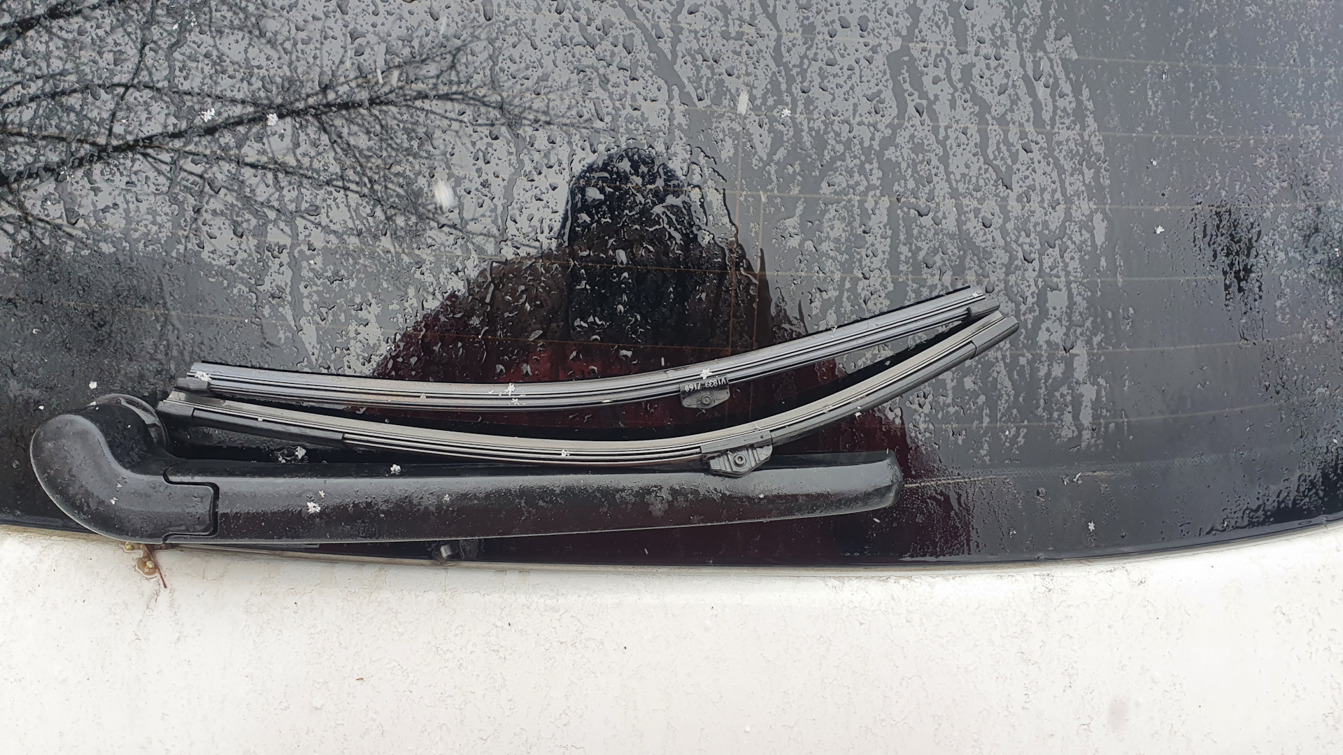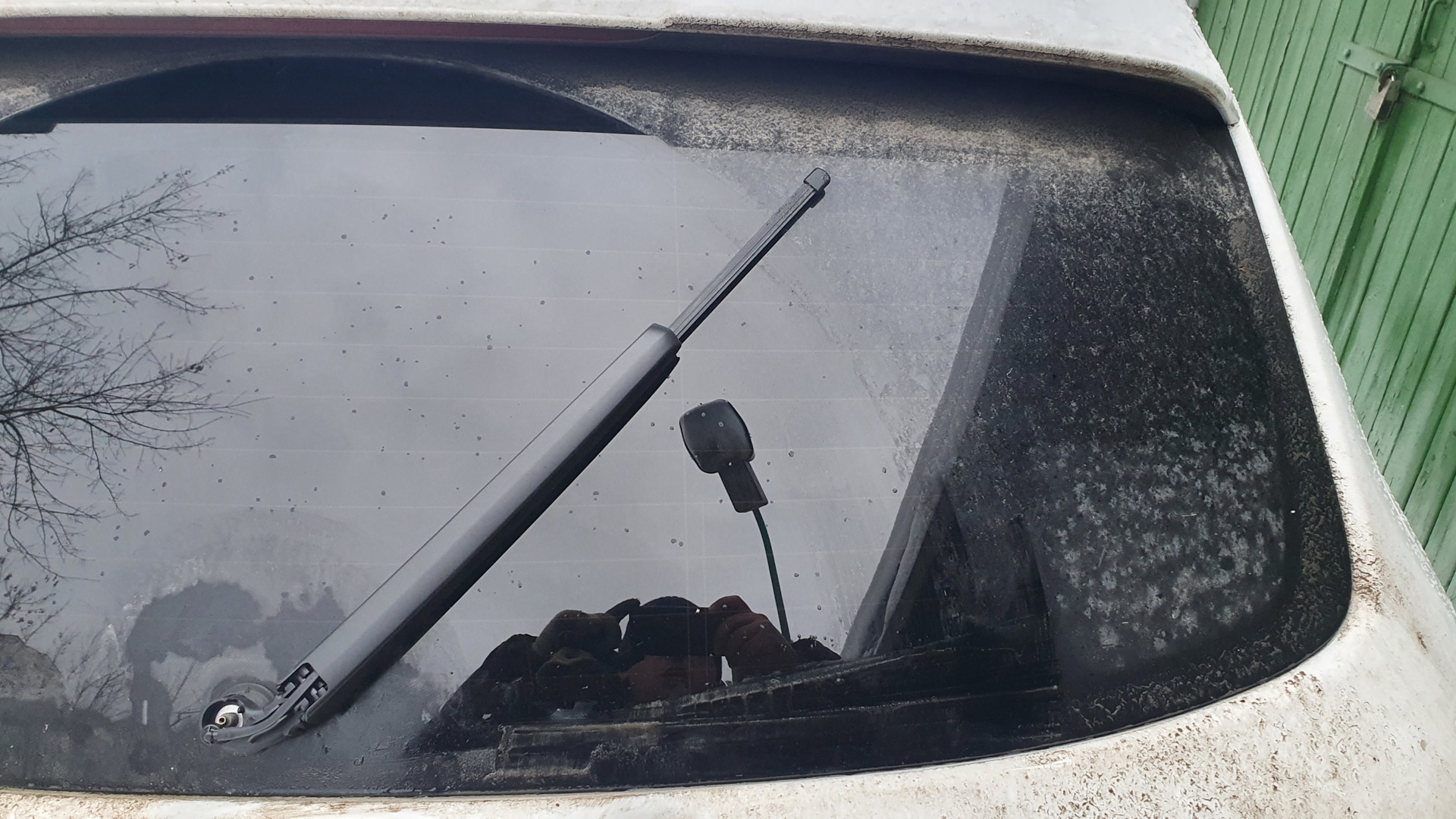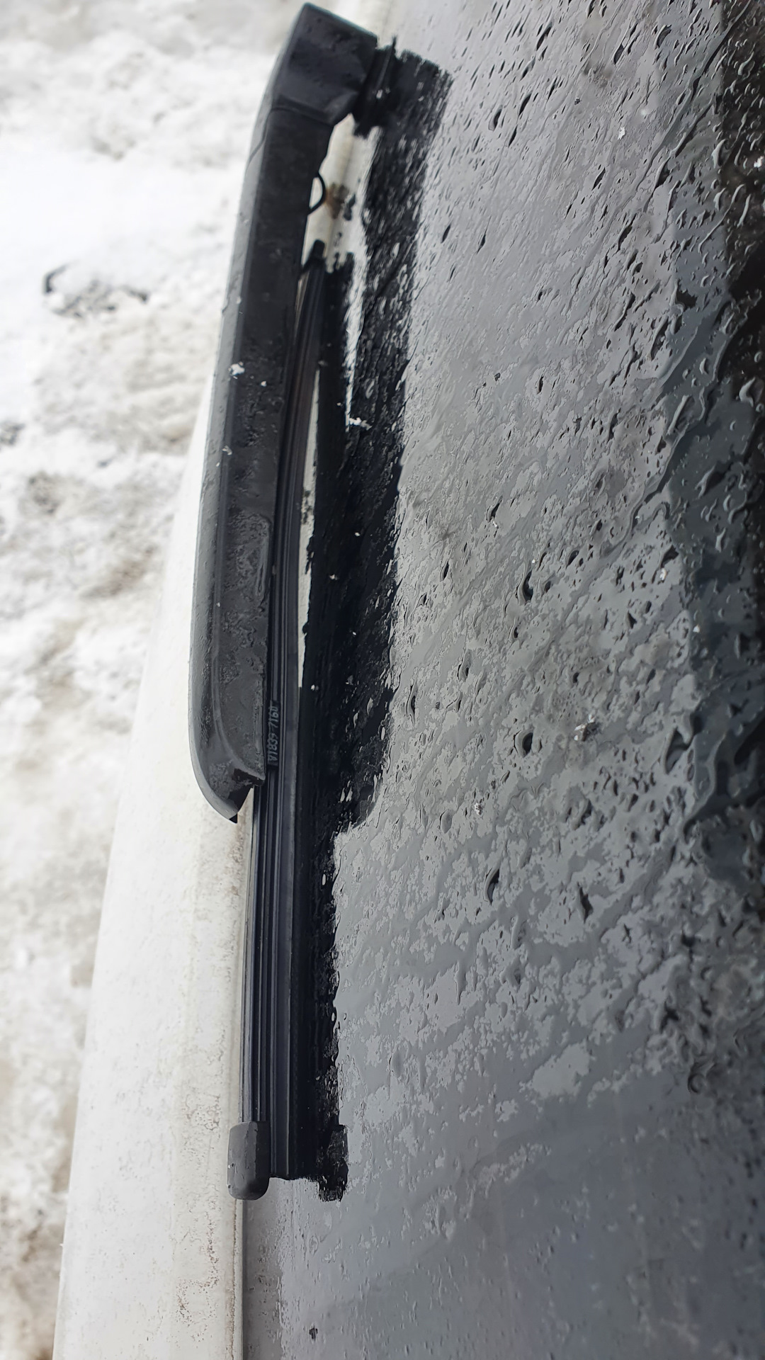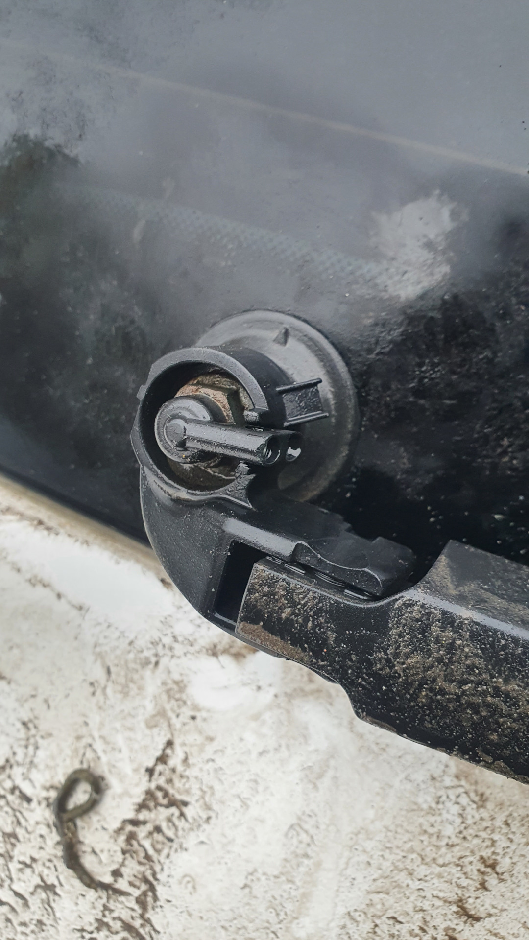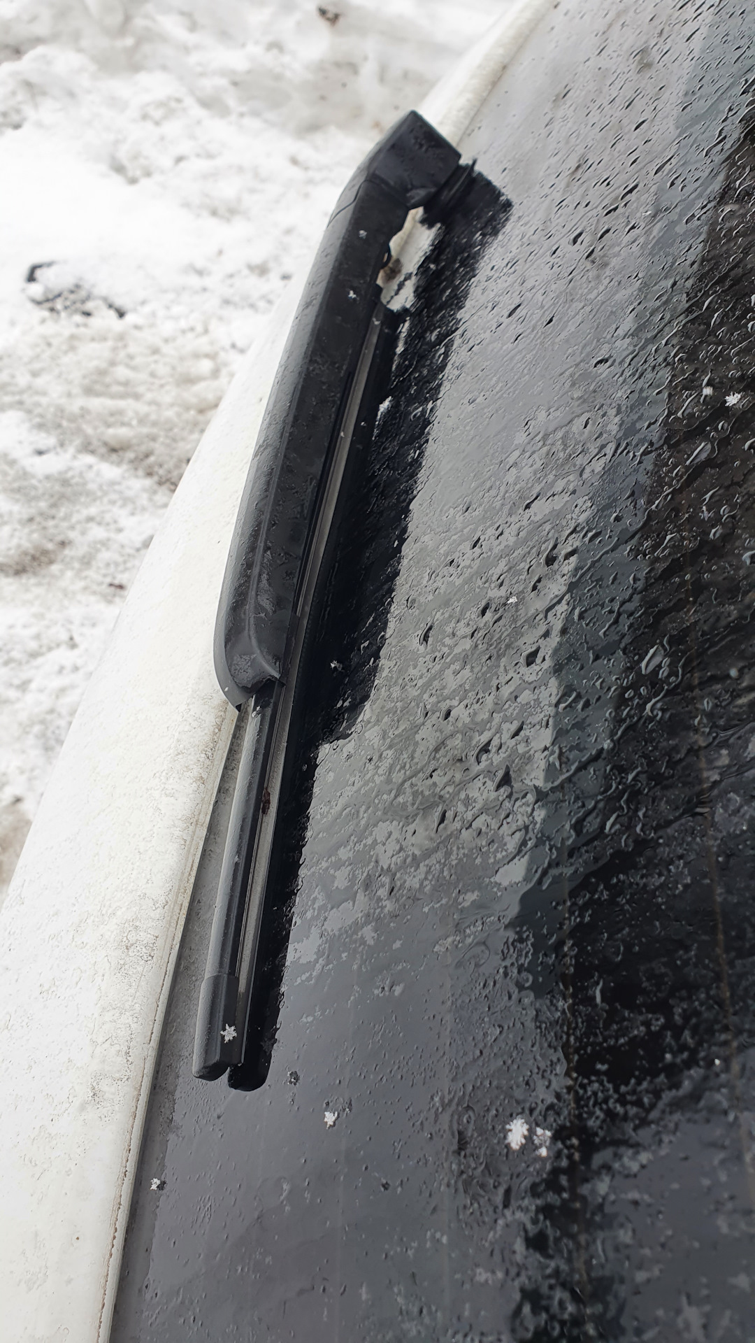 Теперь переходим к самому интересному. Т.к. длина поводка увеличилась, т.к. у старших заднее стекло больше, сместился ближе к краю центр установки щетки. Теперь щетка в положение 90 градусов упирается в спойлер.