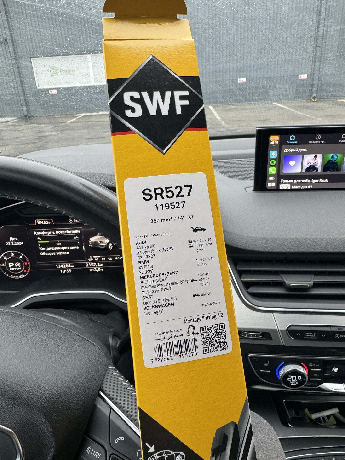 Ребят! Поставил себе такой на q7 4m от Q8, долго не мог подобрать дворник тк все они цепляли, дворник в комплекте с креплением (поводком) идет 340мм но 350мм тоже подходит и такой нашелся идеальный по креплению и размерам без доработок SWF SR527 (119527) фото.