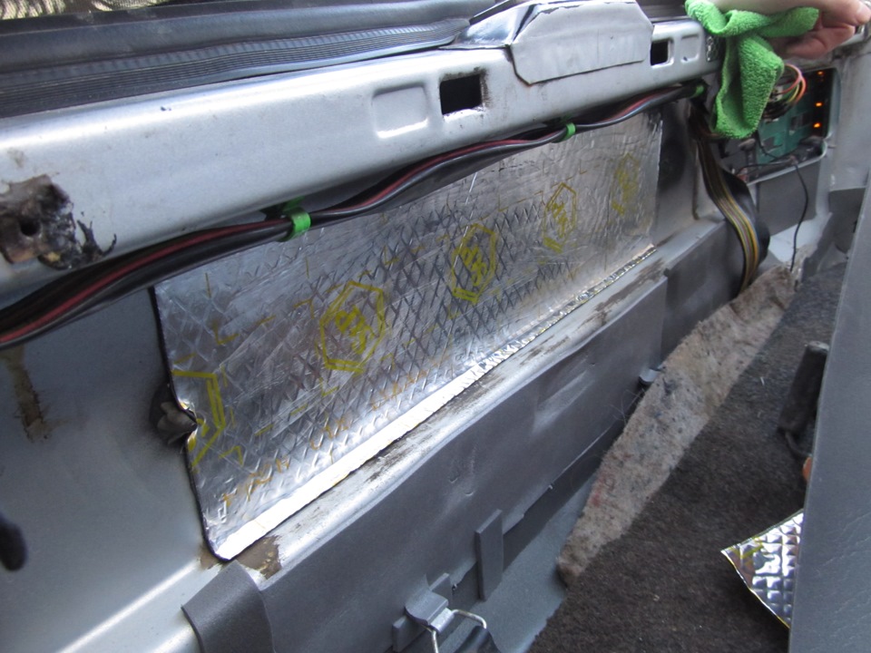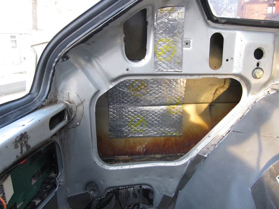 Зарание с вами соглашусь — такая оклейка виброй не совсем эффективна, но во первых бюджет размером со стипуху и задача просто убрать звук консервной банки.