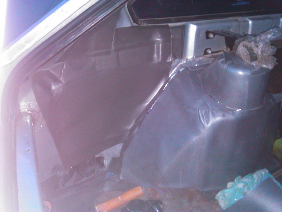 В опной части машины сплен был наклеен во имя того же самого, что бы не тянулы пыляку, да и может чуть-чуть потише стало. Но именно в задней части я во все полости понаклеивал бипласта от стп сантиметрового за место тонн поролона который там был. Налепил на сами крылья и стойки.