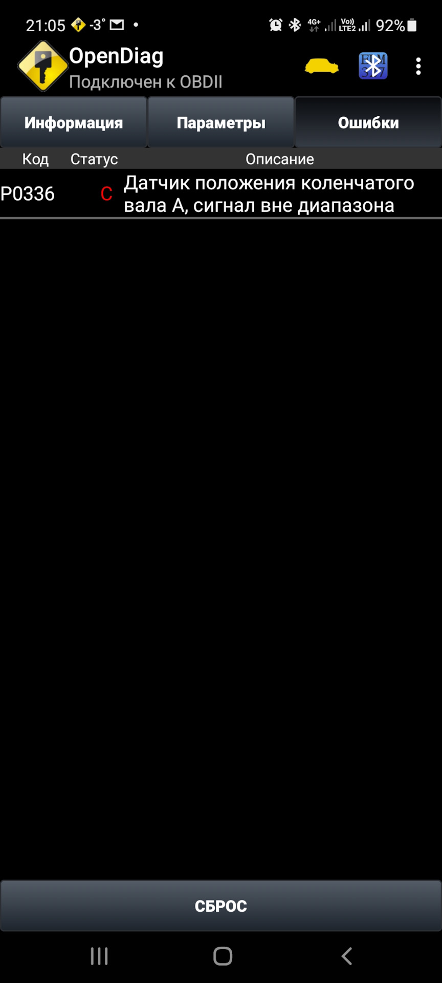 Перекидывал свечи местами — разницы не было, посоветовали подкинуть новый модуль зажигания, а потом чуть потеплело и проблема ушла сама… нооо радовался я недолго, так как несколько дней назад пару раз ощутил странные рывки во время движения. Подумал, что м.б. от льда на дороге, но когда на следующий день это повторилось несколько раз, да еще и с ошибкой Р0336 — датчик положения коленчатого вала А, сигнал вне диапазона.