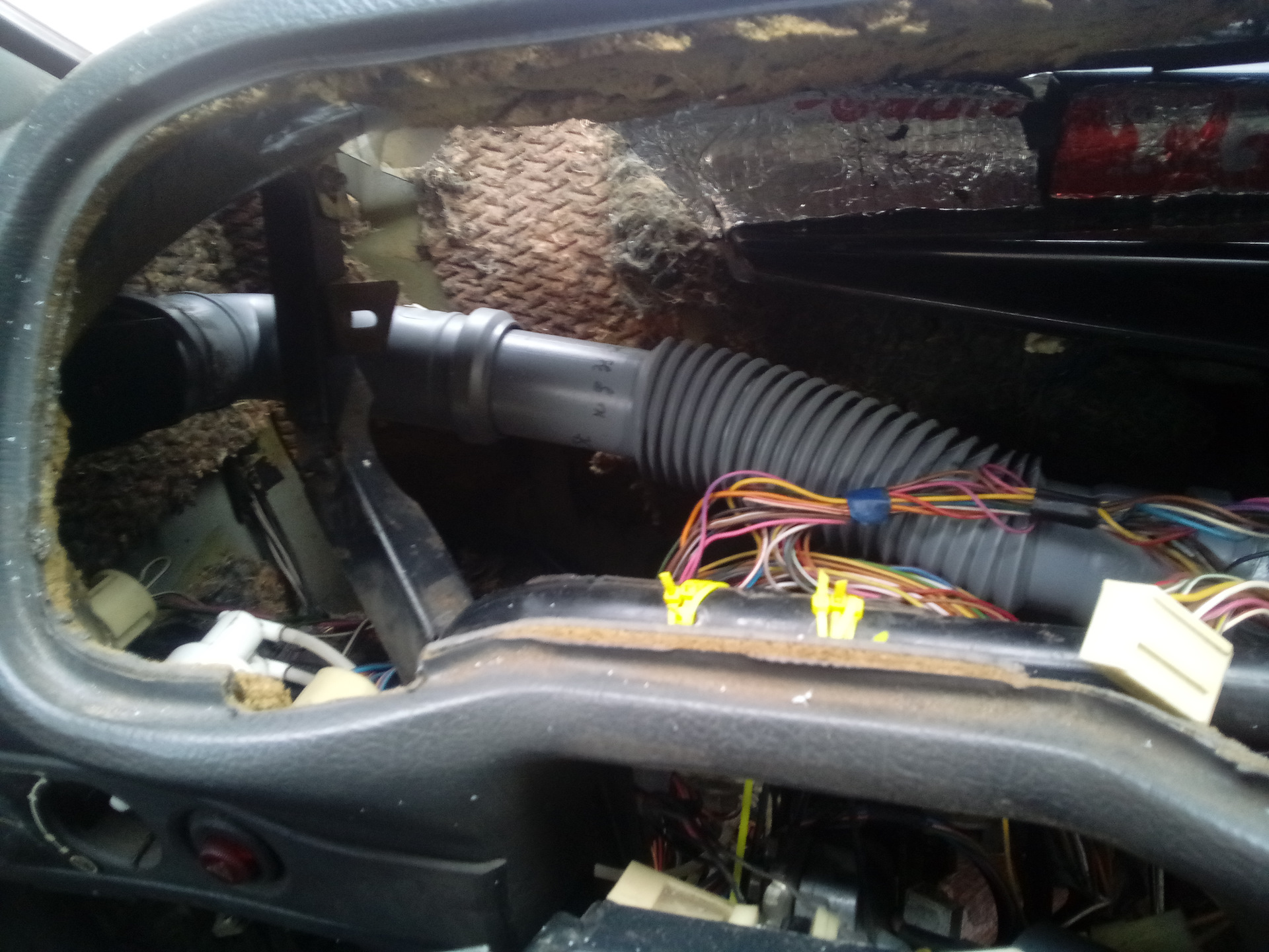 С уголками и дефлекторами пришлось получаться. Дело в том, что когда они в руках перед глазами, они почти легко стыкуются, а в панель их нужно просовывать с разных сторон. Так же пришлось укоротить трубу гофры см на 3-3.5.