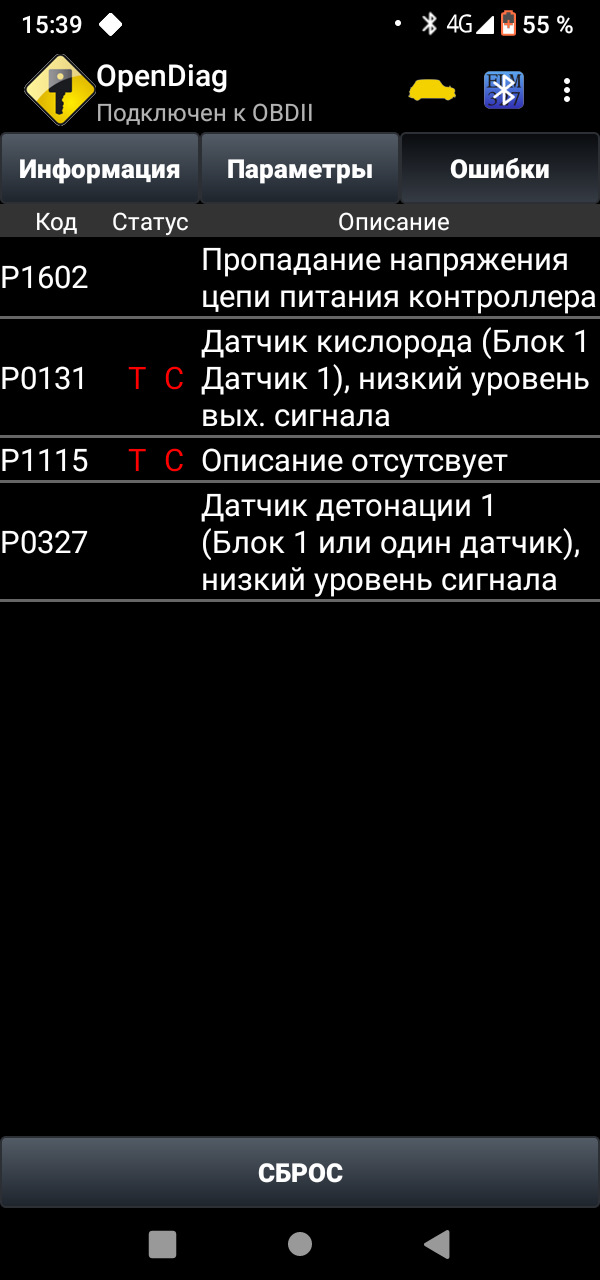 Вчера после работы кинул елм- блюпуп, он мне поведал что Джеки чан пришел по поводу не одной, как было раньше, а сразу четырех ошибок. Обрыв питания сети контроллера, ошибка датчика кислорода, неисправная цепь нагрева датчика кислорода и низкий уровень датчика детонации.