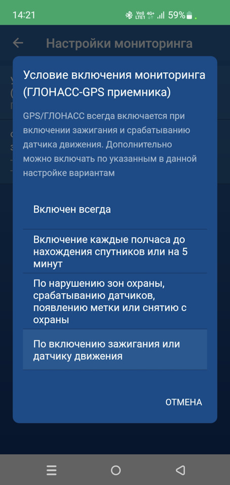 У меня выбран режим "по включению зажигания или датчику движения" и все равно за 2 недели разряжает аккумулятор. Авто в паркинге, минус 1 этаж. Просто засада с этой сигналкой.