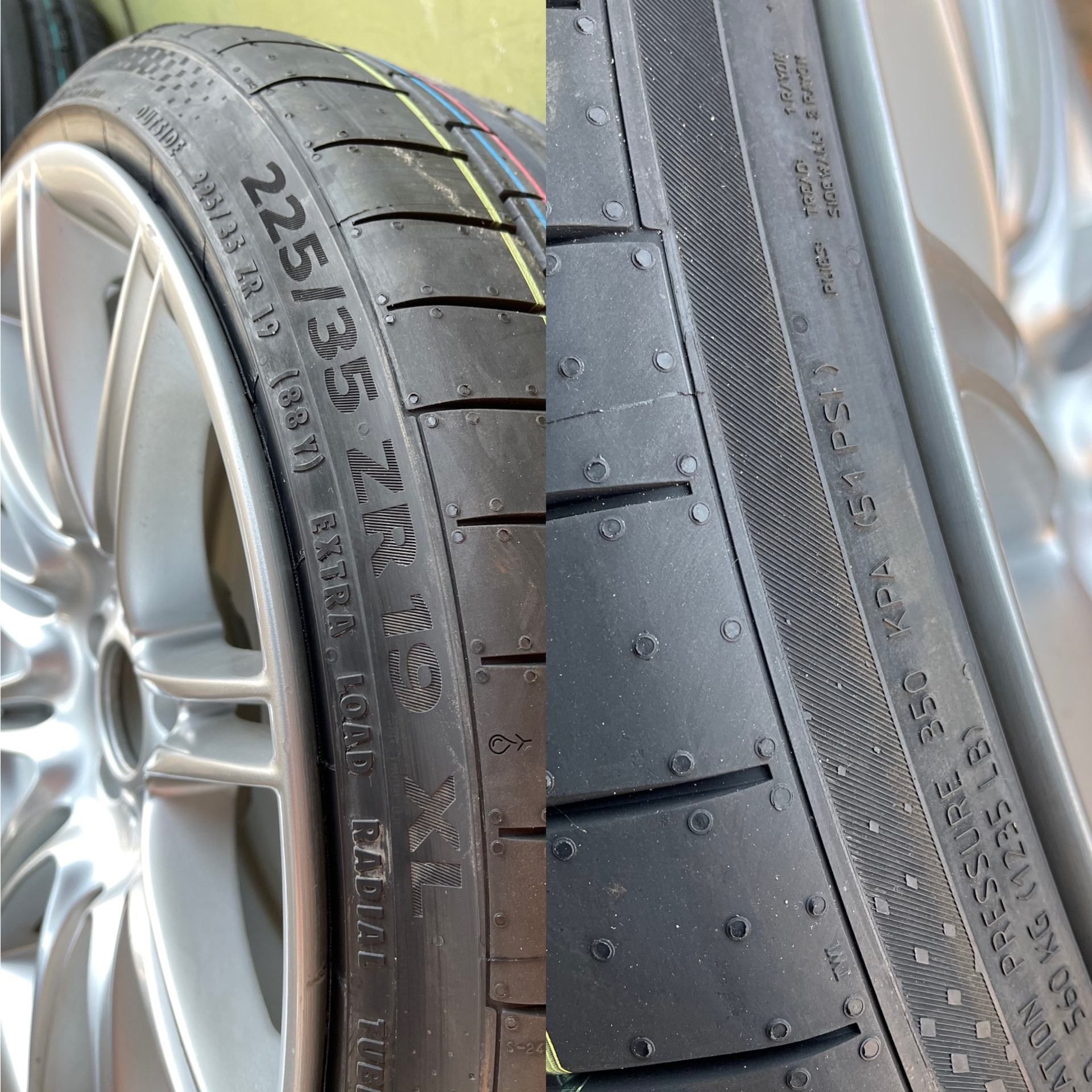 Решил сделать ход конем: переднюю 235/35 поставить на заднюю ось а на перед купить пару новой 225/35. Но что то пошло снова не так)) удача улыбнулась мне и я нашёл комплект