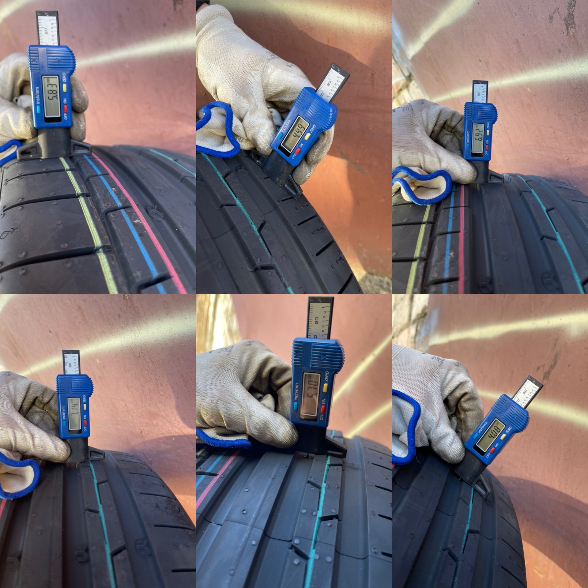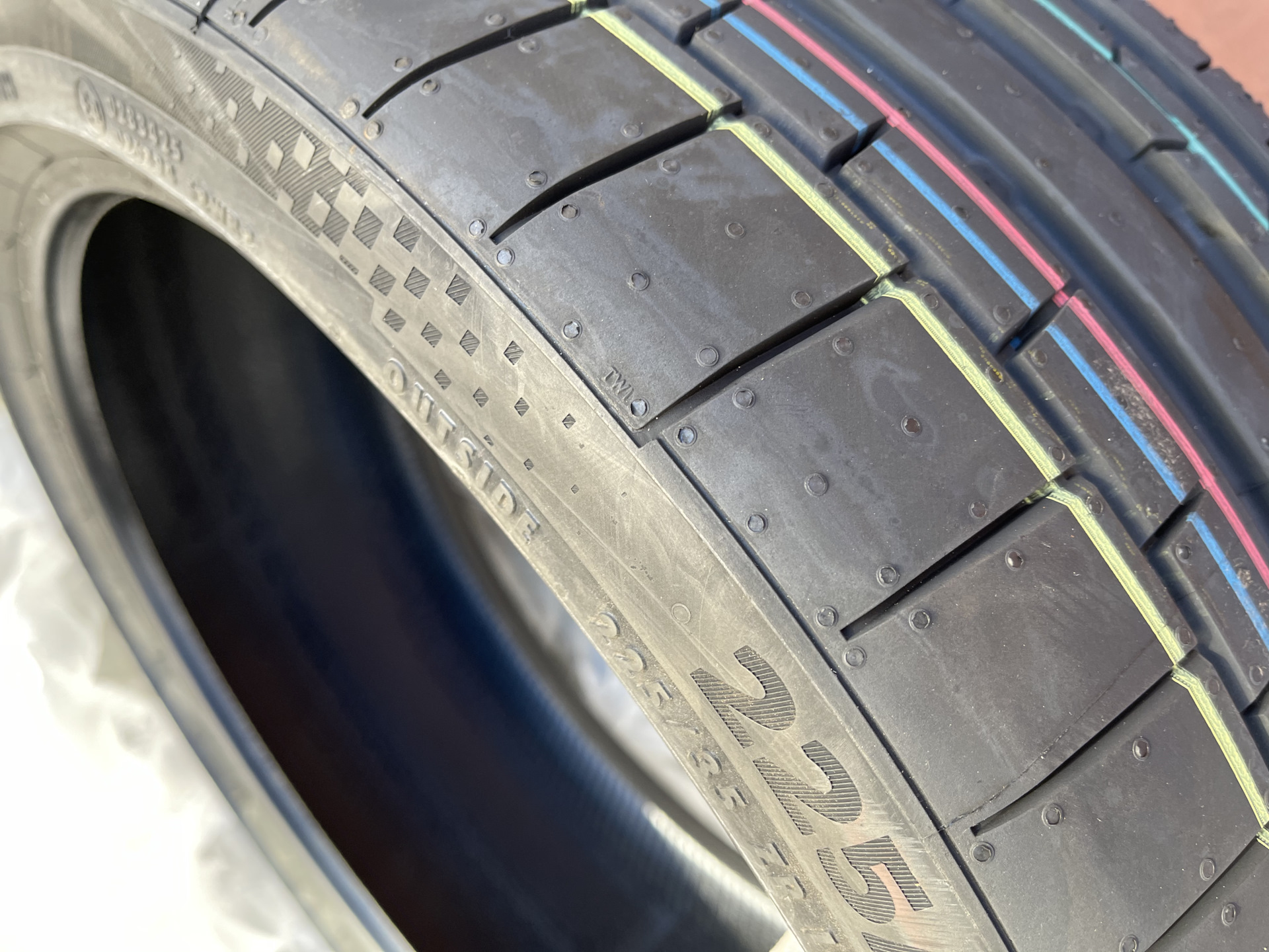 Перейдём к протектору, тут очень интересно, я просто оставлю фото, на наружном блоке протектор минимален, для агрессивного прохождения поворотов.