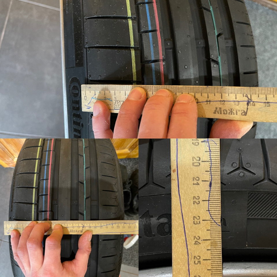 Вот когда штангель прикладываешь — "домик" резины ппц разный. Хотя все 225-е, и все на 8J (кроме Контика)…