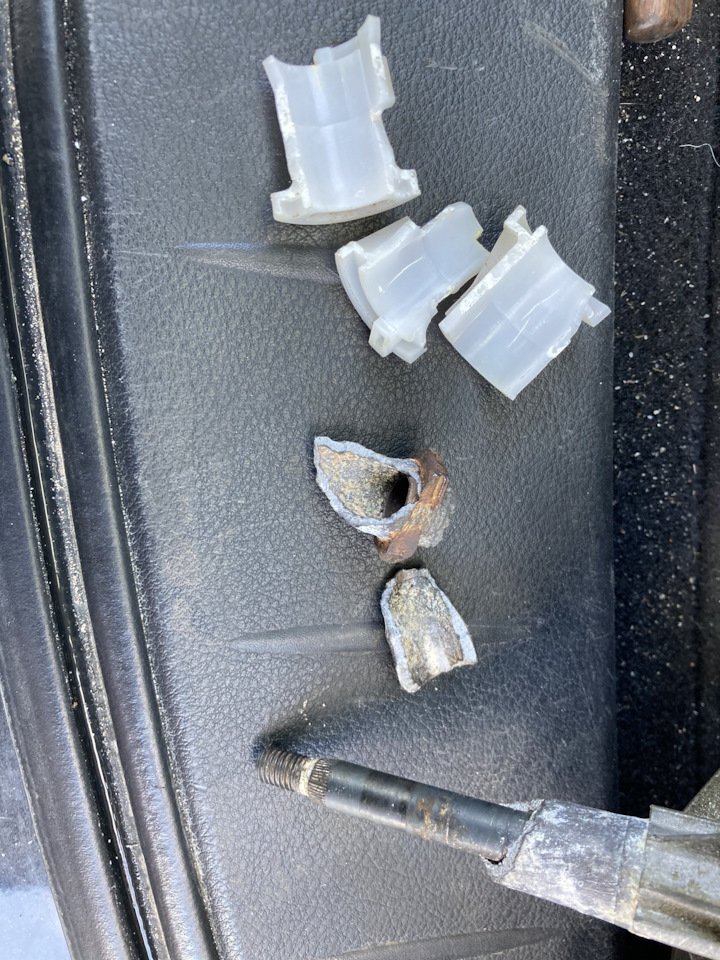можно спокойно зачистить обломыш до состояния ровной площадки, и поставить сверху на шток пирог из шайб и втулок и ездить… втулки пластиковые и резинки скомбинировал из родных и шевроле нива, ездил так два или три года, все отлично и сухо, при правильном нерукожопом исполнении поверь внутри двери сухо и уютно, нет никакой разницы