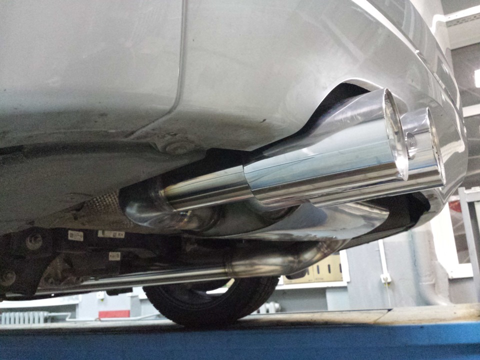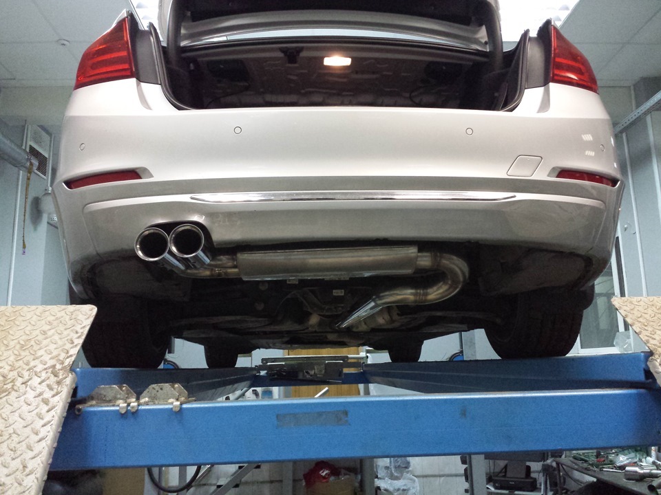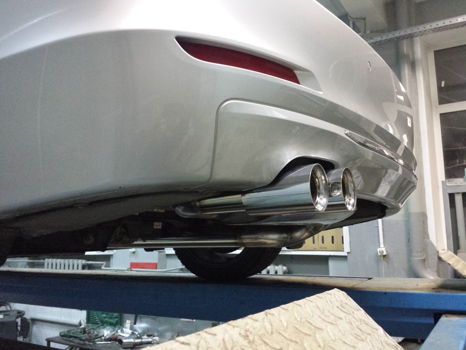 Самый доступный способ использовать глушители от старшей модели с мотором n55 (два глушителя, раздвойка) и два резонатора.