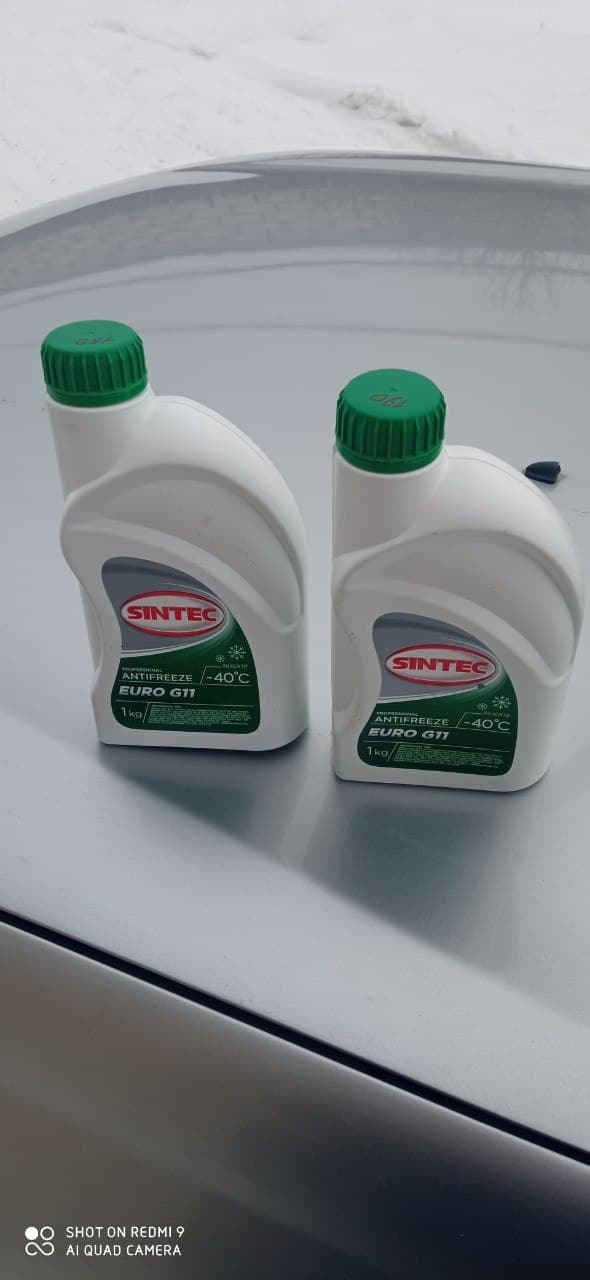 Дальше доливаем антифриз, ушло у меня грамм 700 и едем на горку, чтобы задрать морду и выгнать воздушную пробку из печки. На этом замена окончена.