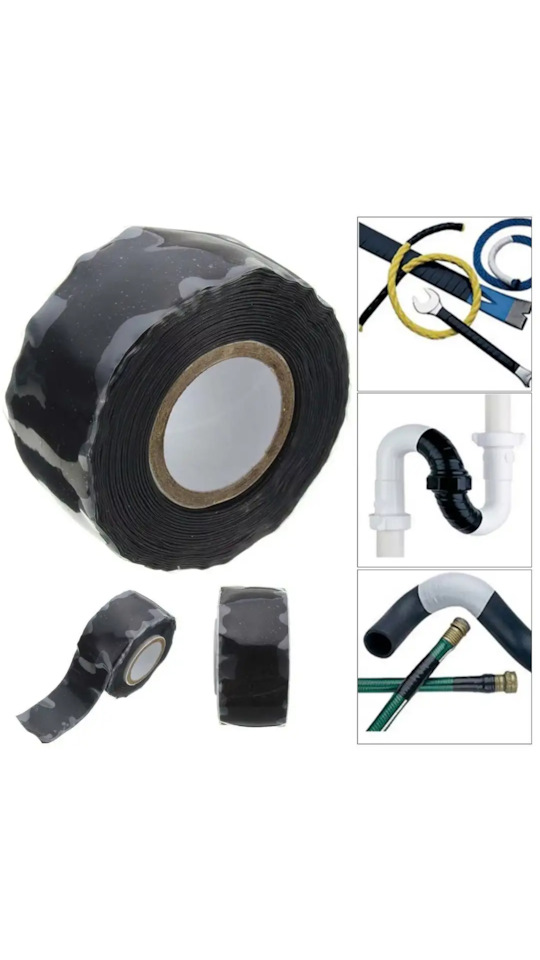 Такую ленту брал на Али, валяется в багажнике, классная вещь, в "покое" не липкая, а когда намотаешь, то так сильно склеивается, что не отодрать, получается сплошная масса. Для таких случаев самое то.
