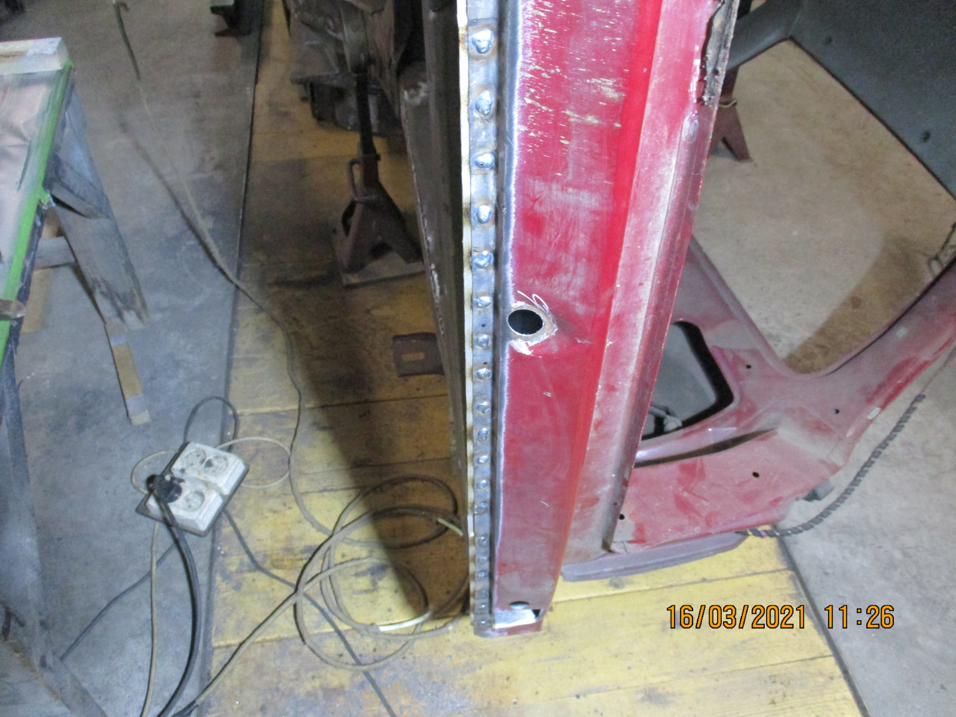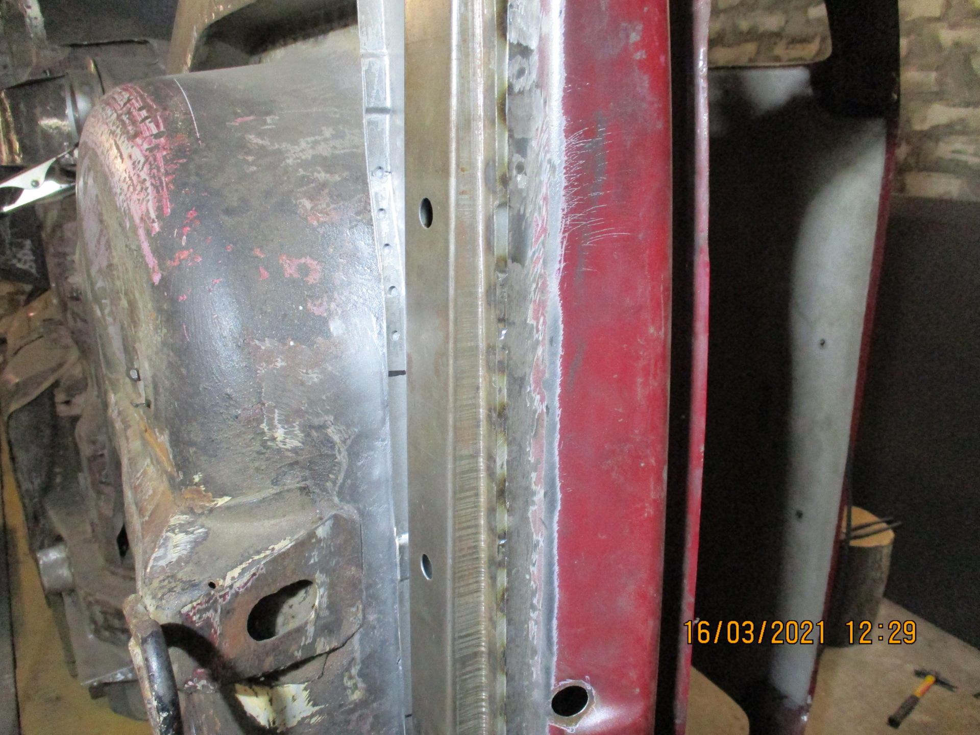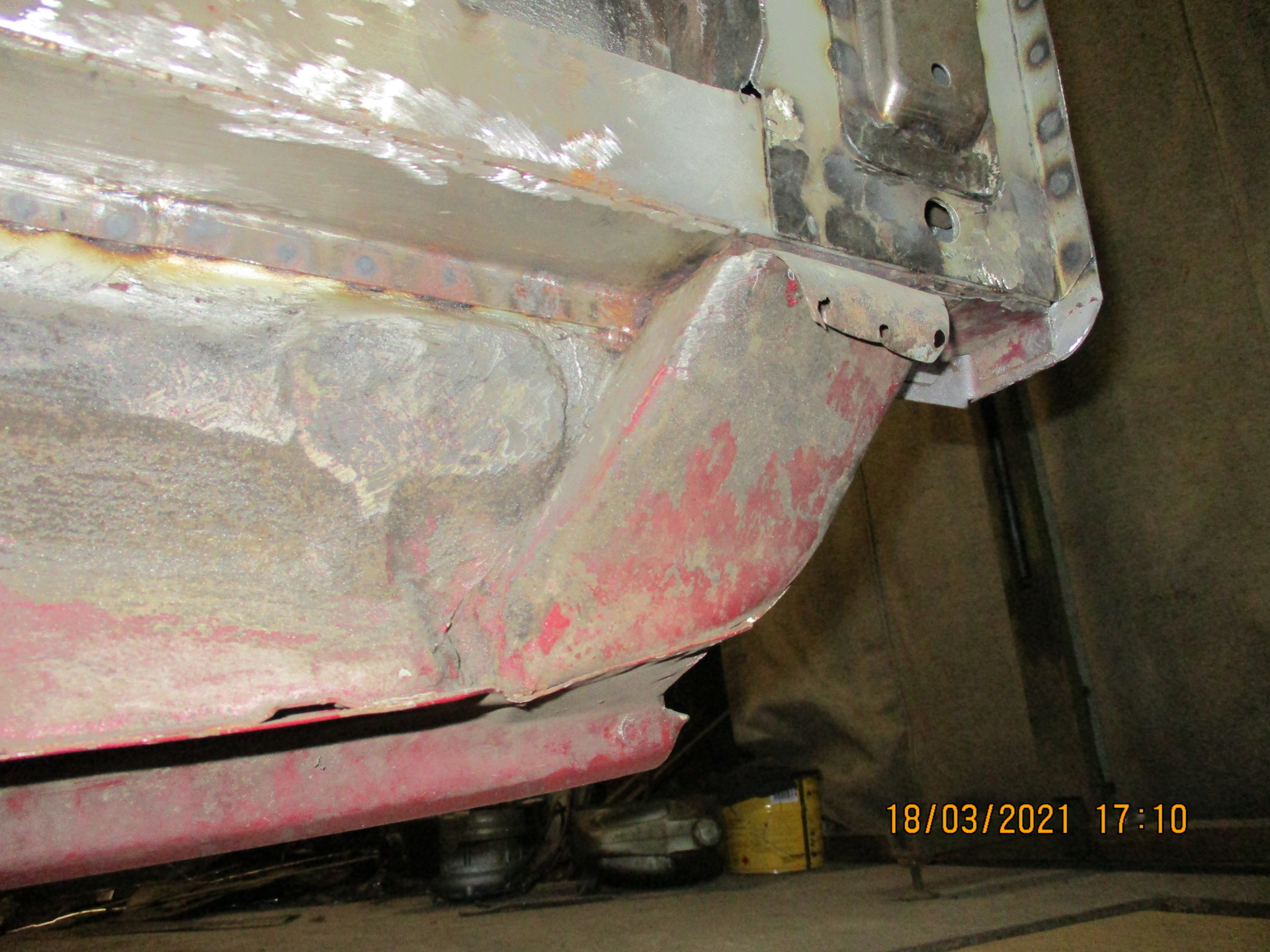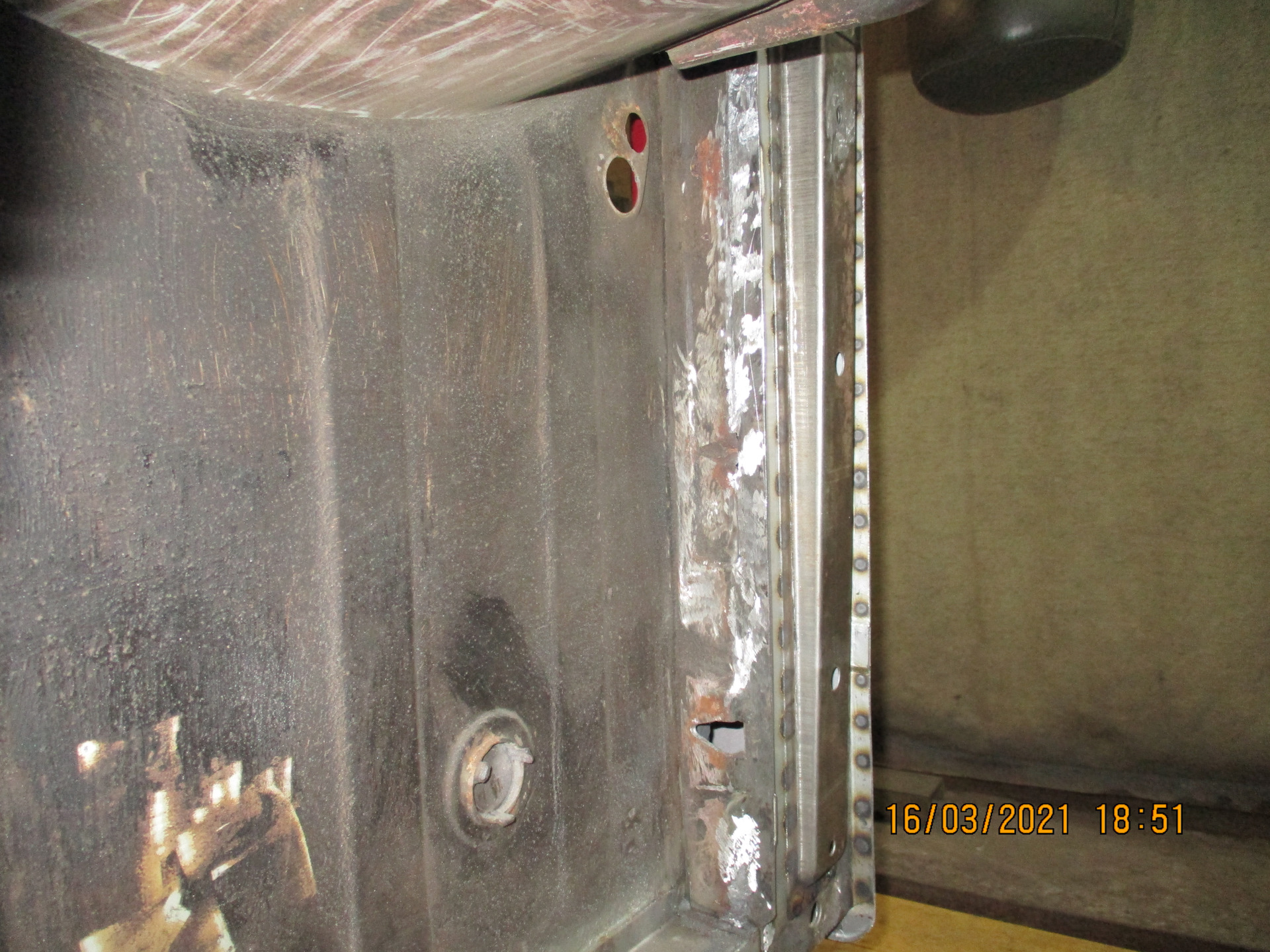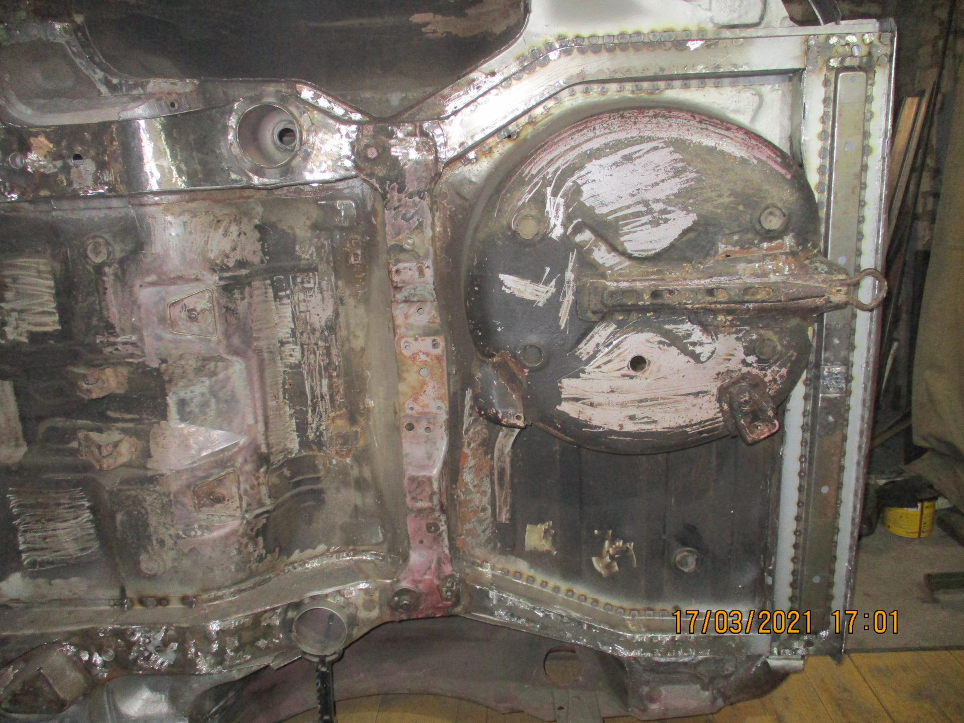 Приварена.Зачищена, но ещё не подрезана.Здесь уже подрезана и приварена, за исключением нескольких точек.Эти точки пришлось варить к поеденной коррозией железяке и я подложил под неё медную пластину-бандаж, чтобы не прожечь.Эти тоже к ржавенькой варить.Была щелка.Подтянута и приварена. Тоже через бандаж.Всё подзачищено.Тут красиво.И тут красиво.Новая силовая часть зада моей машины почти готова.Теперь нужно вот этот уголок сваять.С этой стороны более-менее цело.Должно получиться как-то так.Внутри тоже усилитель. Как его сделать я уже придумал.Сделал выкройку и вырезал кусочек примерно.Начал примерять…В результате получилась вот такая гнутая железяка.С другой стороны.Вот так подходит к месту.В процессе сварки подтянется.