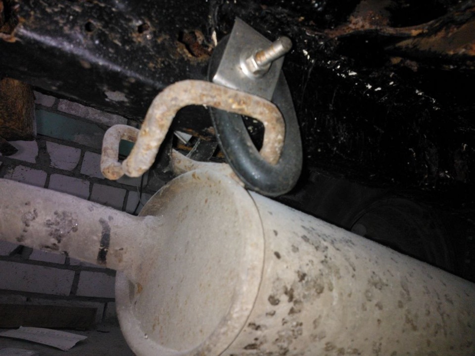 Оригинальные резинки, для подвешивания глушителя, а именно последней банки меня не устроили, и я решил сделать так. Держится хорошо, не болтается, есть возможность подрегулировать, а самое главное не стучит по балке.