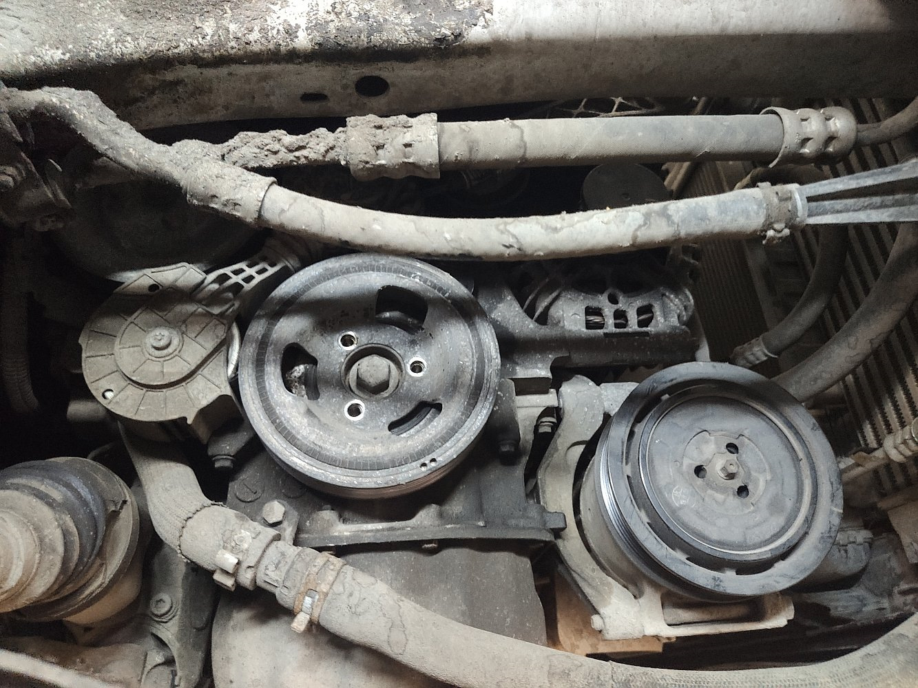 Обнаружили одну трещинку на шкиве помпы. Саша сказал, что можно пока не менять.