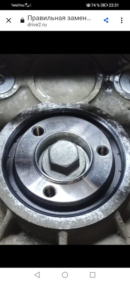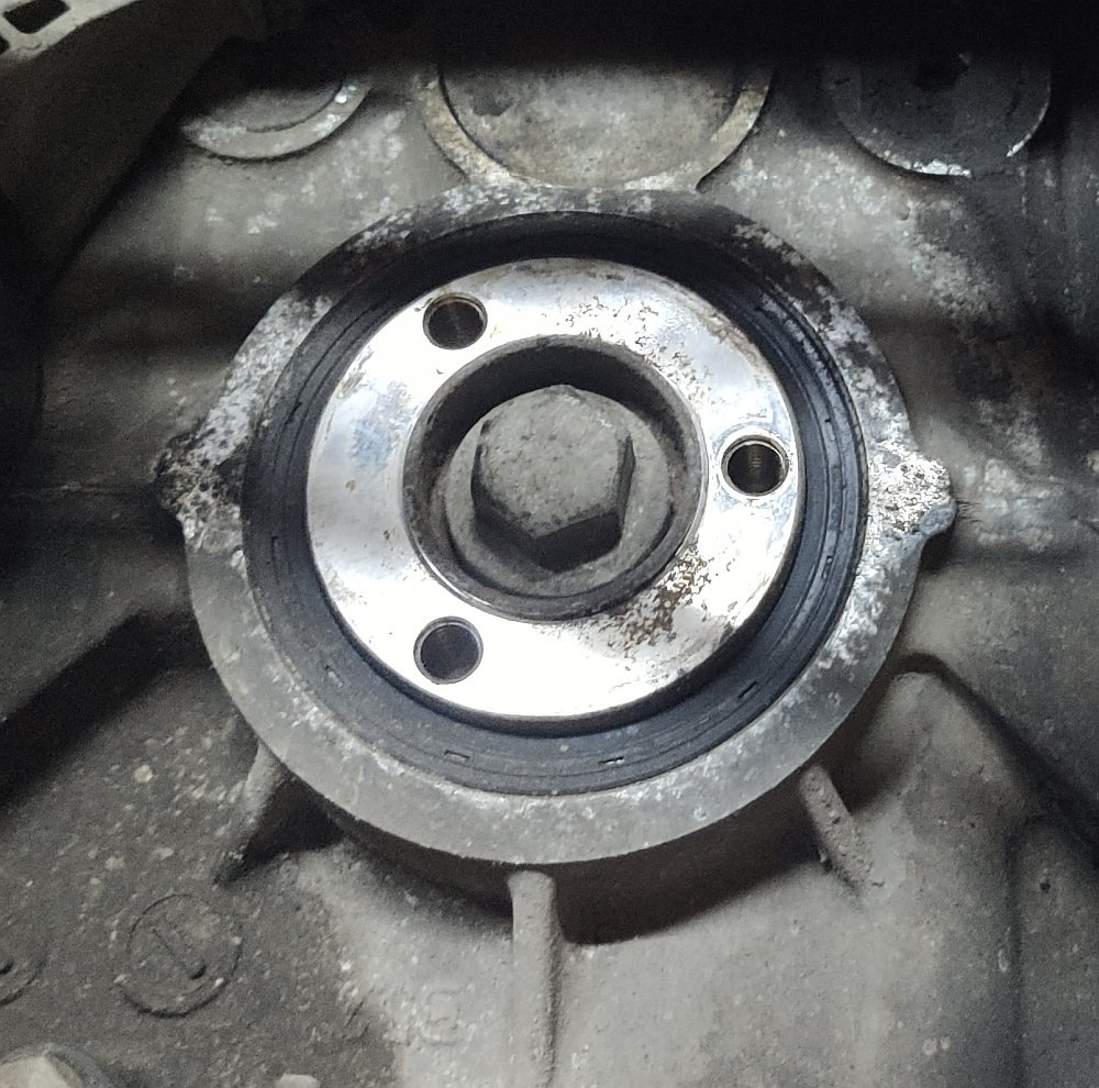 Обратите внимание на фото старого сальника коленвала в гнезде картера и на фото нового сальника в гнезде. Старый стоял выпуклой стороной наружу, а новый выпуклой стороной внутрь.