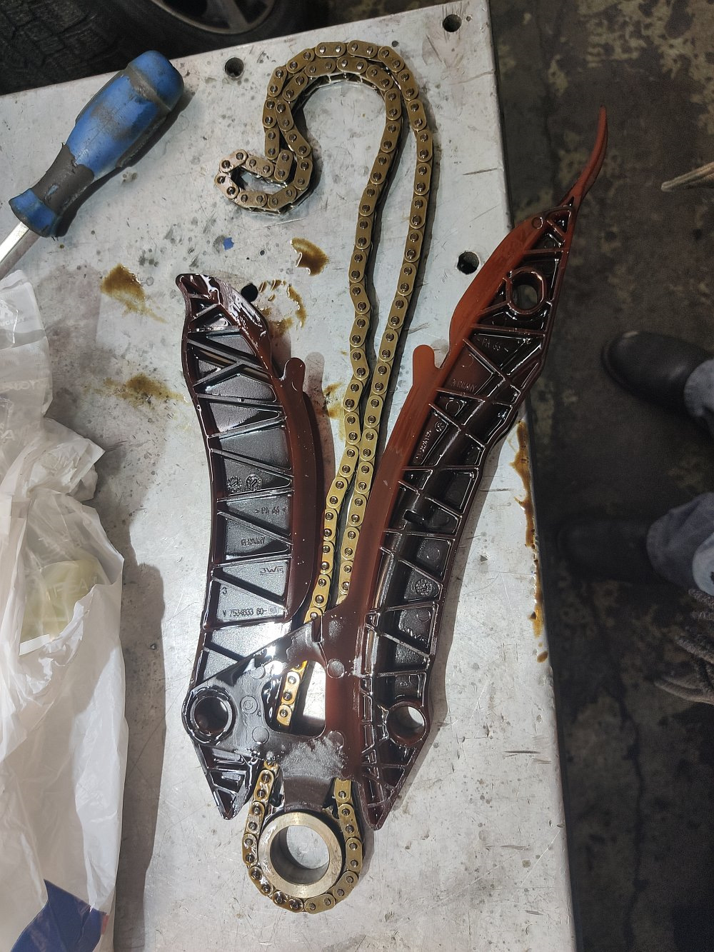 Когда я менял трубку подачи масла на турбину и прокладки корпуса масляного фильтра на www.drive2.ru/l/580495961051105177/ мы померяли растяжение цепи — оказалось, что растяжение 72мм. Т.е. предельный уровень.