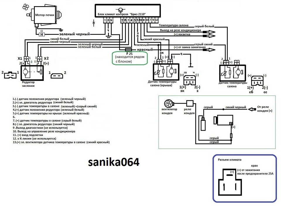 Здравствуйте. Статья интересная, но у меня при покупке автомобиля ваз 2112 стоял блок с А, и блок на потолке не работал, не работала А, на горячую дул — холод, холод — горячий. Менял провода местами 2 и 8 стало нормально, А — не работала ставил с рабочих машин режим А не работает, менял на потолке датчик толку нет. Купил новый блок с режимами 1. 2. 3.4.- что интересно он работает и работают регулировки температур, блок на потолке тоже работает.Кто может подскажет в чем была причина.