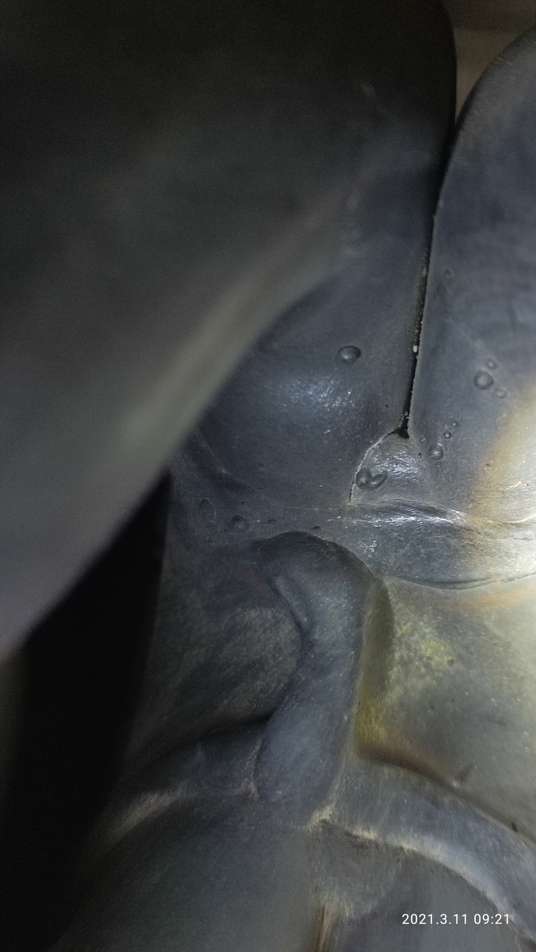 В тот же день, отправился на сварку. Коллега при осмотре сомневался, что это трещина, т.к. она была очень тонкая и неочевидная. Согласившись с моей просьбой, что сварной шов по возможному негерметичному участку не будет лишним, принялся за работу.