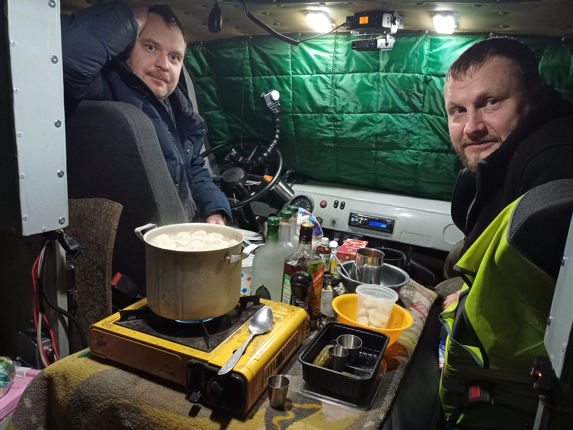 люстра от Epamobil и кардан от Waxoyl. все это решили установить по пути… Не далеко от Кемерово встретились с нашим вторым экипажем в составе AlekseyBychkov и vovka311, маленько отметили начало экспедиции и провалились в сон, это был, пожалуй, самый тяжелый день экспедиции, уж больно крепко держат незаконченные дела!