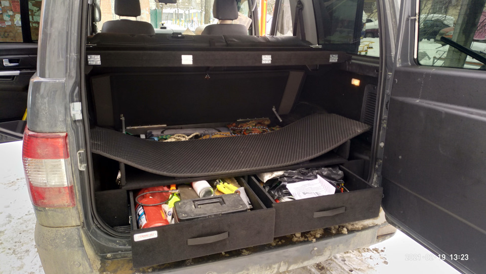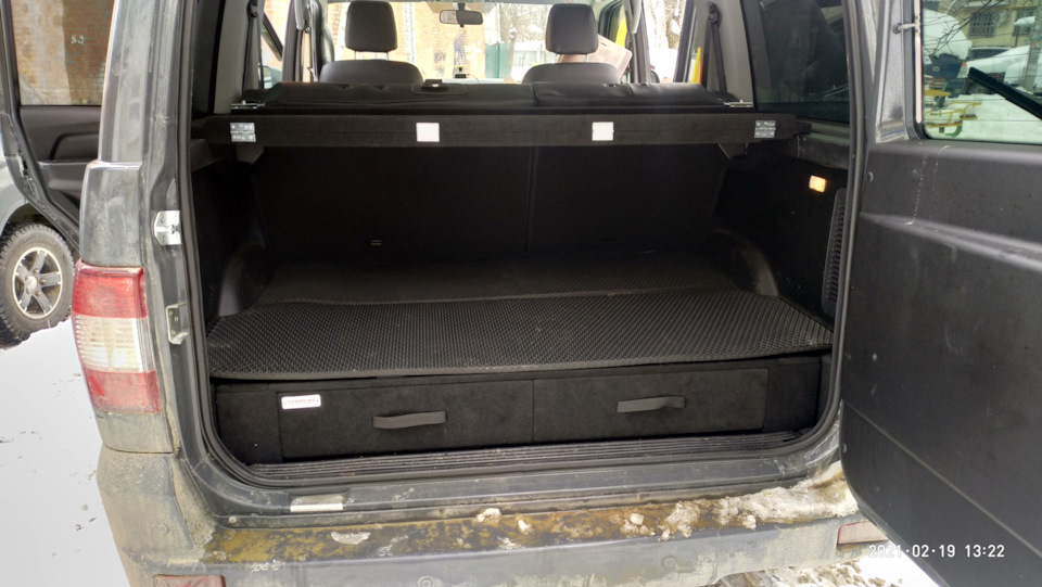 Багажник у уазика большой, но крайне бестолковый. Все лежащее в нем 100% перемешается в кучу-малу. Решение тоже уже давно известно: органайзер. А кто у нас делает самые лучшие органайзеры? Конечно Михаил, или steward 4x4! Опыт прошлого уазика был исключительно положительным, поэтому было решено повторить.