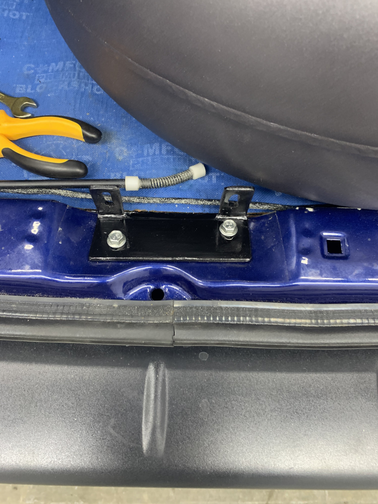 Делаем переходной кронштейн и ответку, все ставим, подгоняем, вуаля и готово, крышка сидит мёртво и тишина (по крайней мере от двери багажника)