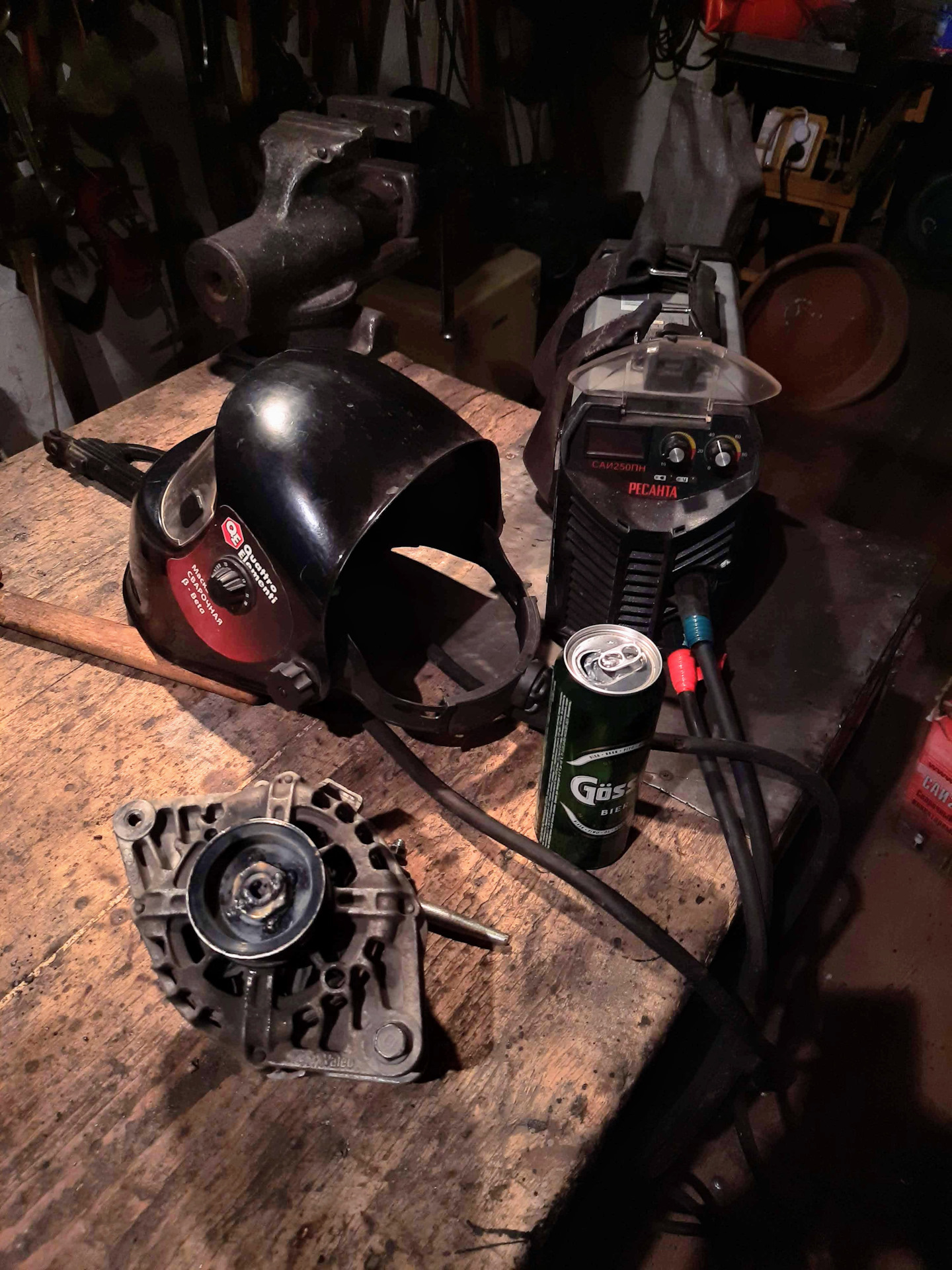 Снял гену, убрал в рюкзак и пошел в гараж пить пиво и варить. Шкив в этот раз сильно пострадал — его разбарабанило, как и вал. Долго примерялся и отцентровывал, проварил уже жестко его. Так как могут читать слабонервные люди — показывать не будут ))))