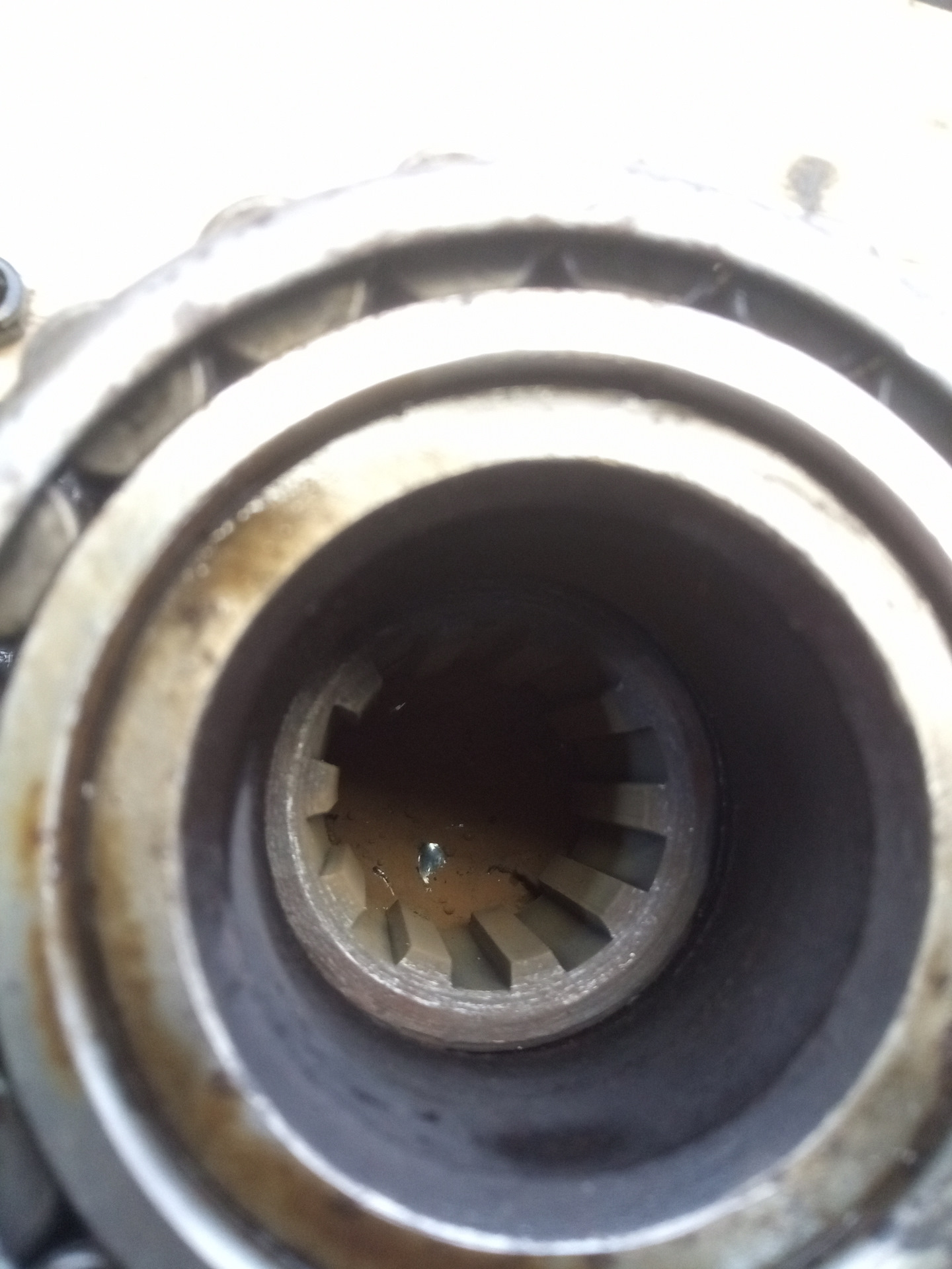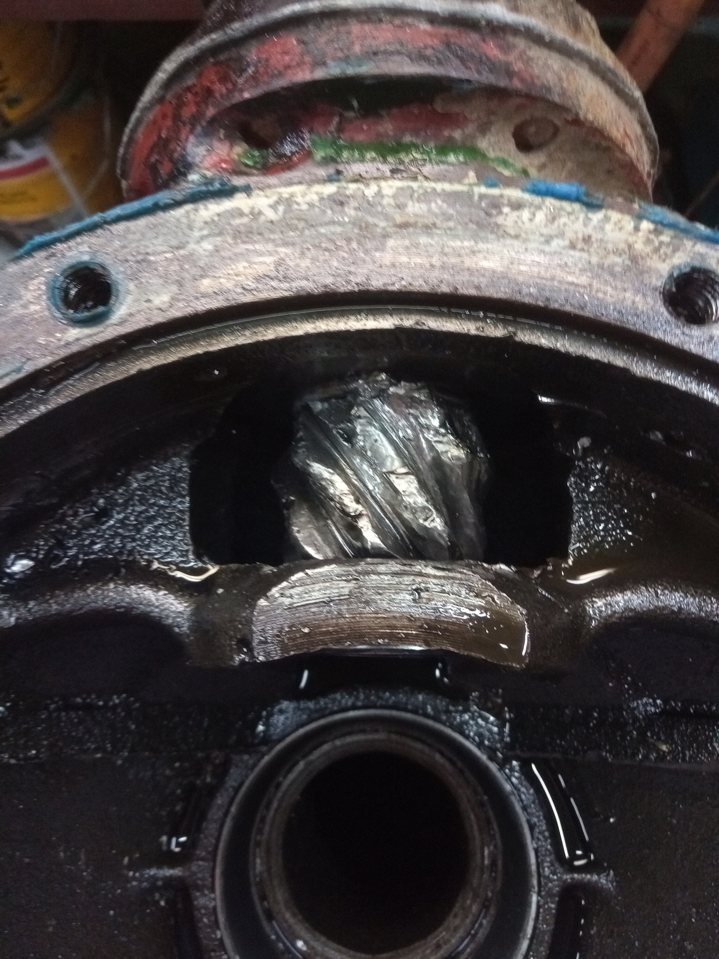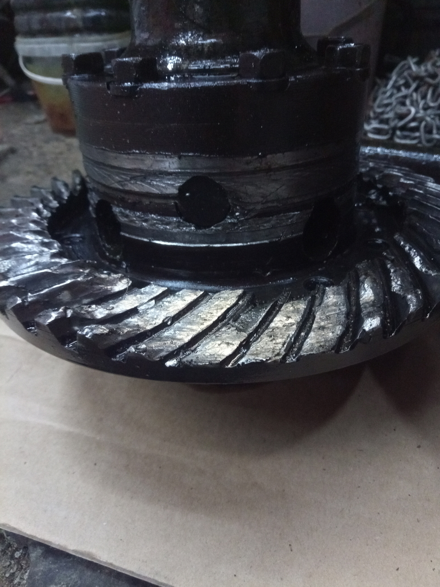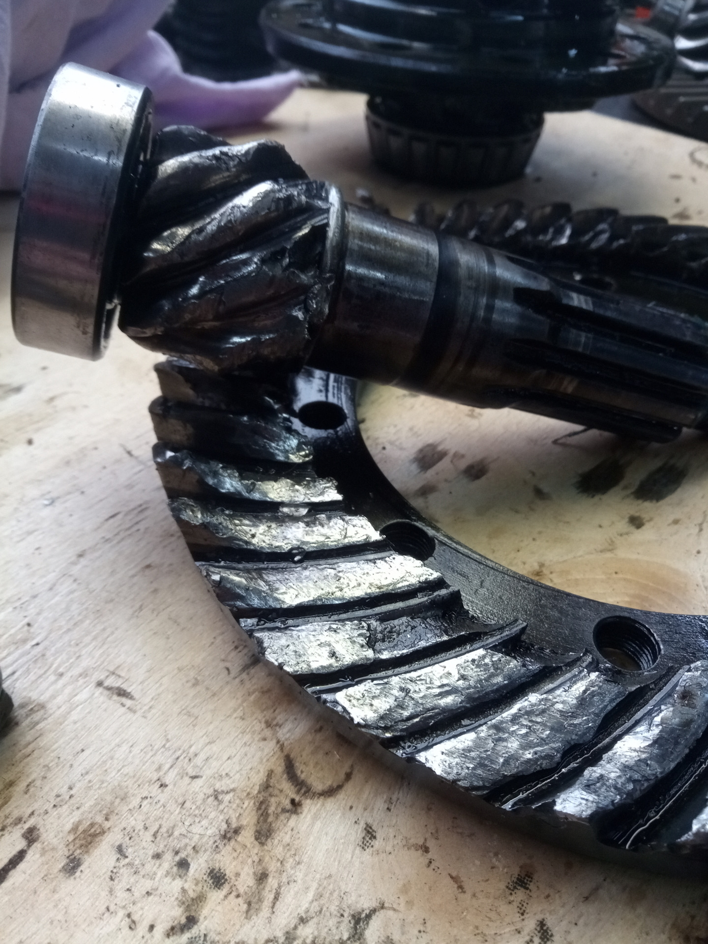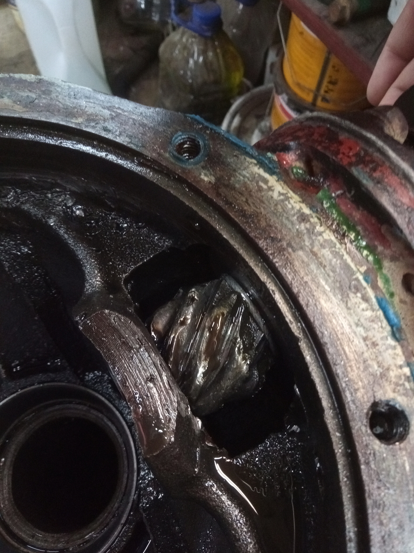 Как писал в предыдущей записи — порвал редуктор заднего моста об пенек, штурмуя целину с настом. Разбор как и ожидалось выявил сломанные зубы, отсутствие почти 7 зубов полное, остальные в разной степени погрызены.