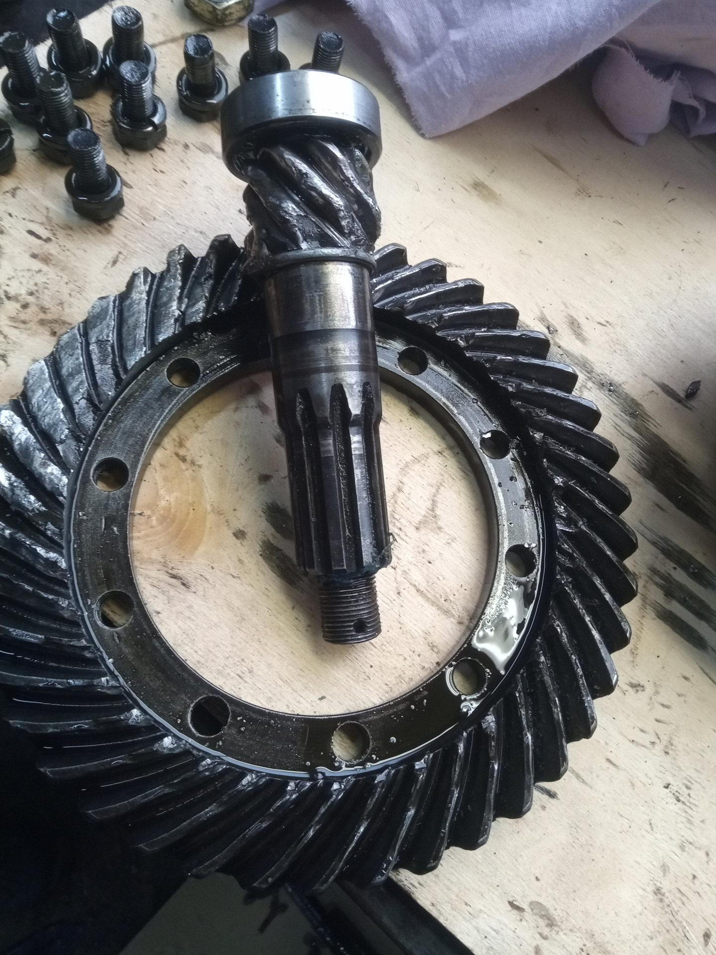 . 4 раза половинил, регулируя зацеп. На данный момент все собрано и даже обкатано. Теперь очередь за передним мостом — замена пары