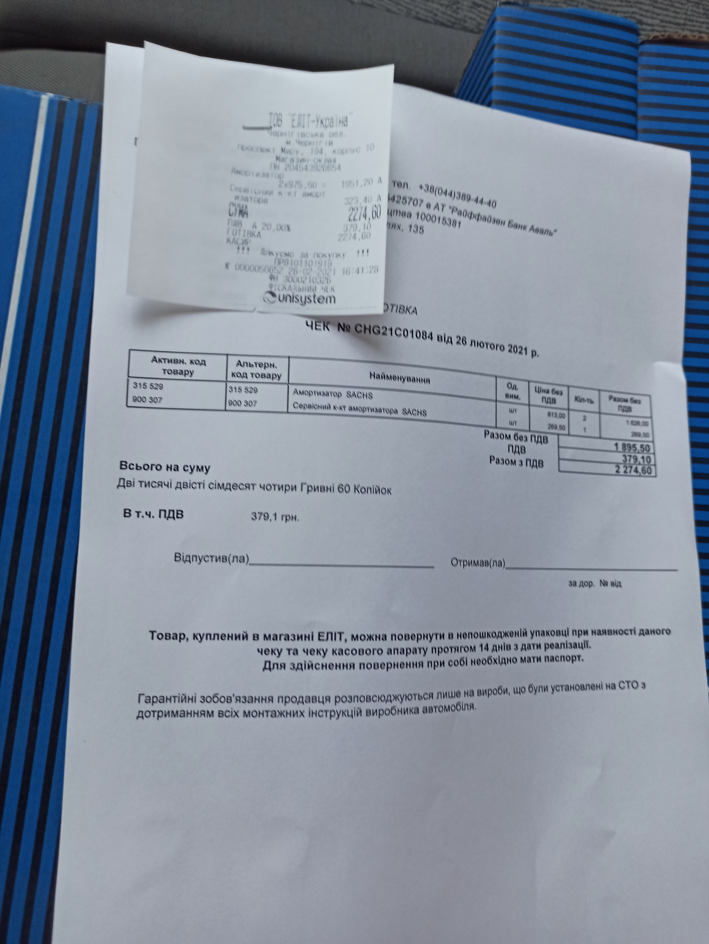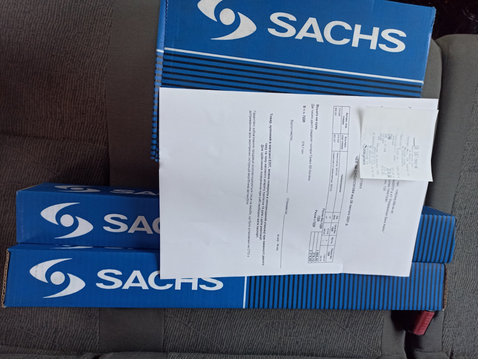 *Спустя пару недель, по совету хороших людей поехал на СТО на территории ТК "Аврора" к Андрюхе. И не ошибся. Откачали фреон, сняли компрессор(600грн), подобрали подшипник(взяли японский, хороший. 250грн), заменили подшипник и масло в компрессоре, поставили его обратно, залили фреон обратно и дозаправили недостающие 200грамм(100грн/100грамм). И это все мне обошлось в 2 раза дешевле, чем на СТО у Ромы. Помимо этого заменили задние тормозные колодки(LPR, фото забыл сделать) и подтянули ручник. За все в куче, с учётом запчастей взяли всего лишь 1800грн! Цена мне настолько понравилось, что я заменил ещё и задние амортизаторы, ибо правый стучал, а левый запотел. +Ещё 300грн за работу. Пыльники на них оставил старые, ибо они были в отличном состоянии. Амортики поставил Sachs.