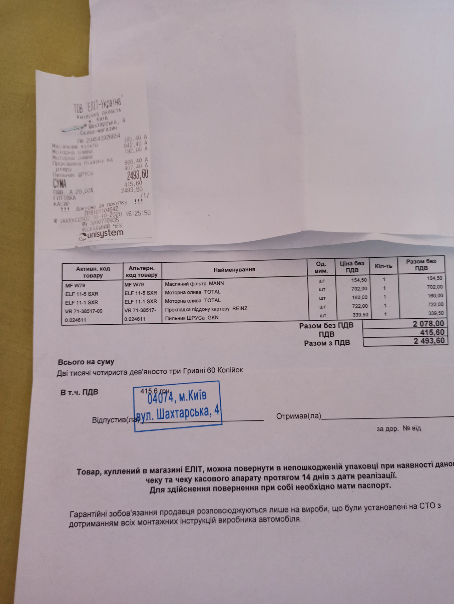 *Лампочки в противотуманки. Пока собирали поддон — я тихонечко вкрутил их сам, чем сэкономил 150 грн., мелочь, а пол цены развала-схождения😉))))