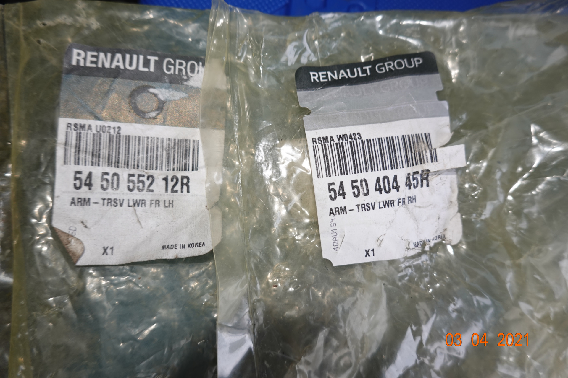 Само собой стал изучать вопрос замены рычагов в сборе для чего были закуплены следующие претенденты: оригинальный (арт. 54501JD000 — 4 860 руб.), RENAULT/SAMSUNG (арт. 545055212R — 3 270 руб, 545040445R — 3 630 руб) производство Корея и TRW (арт. JTC2562 — 5 240 руб. и JTC2563 — 5 240 руб.) производство Малайзия.
