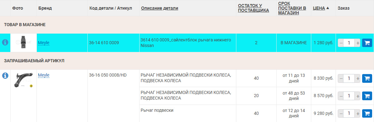 Есть еще один подсад. При поиске рычагов для Колеоса выдает замену от MOTRIO (типа делает детали для постгарантийного обслуживания)
