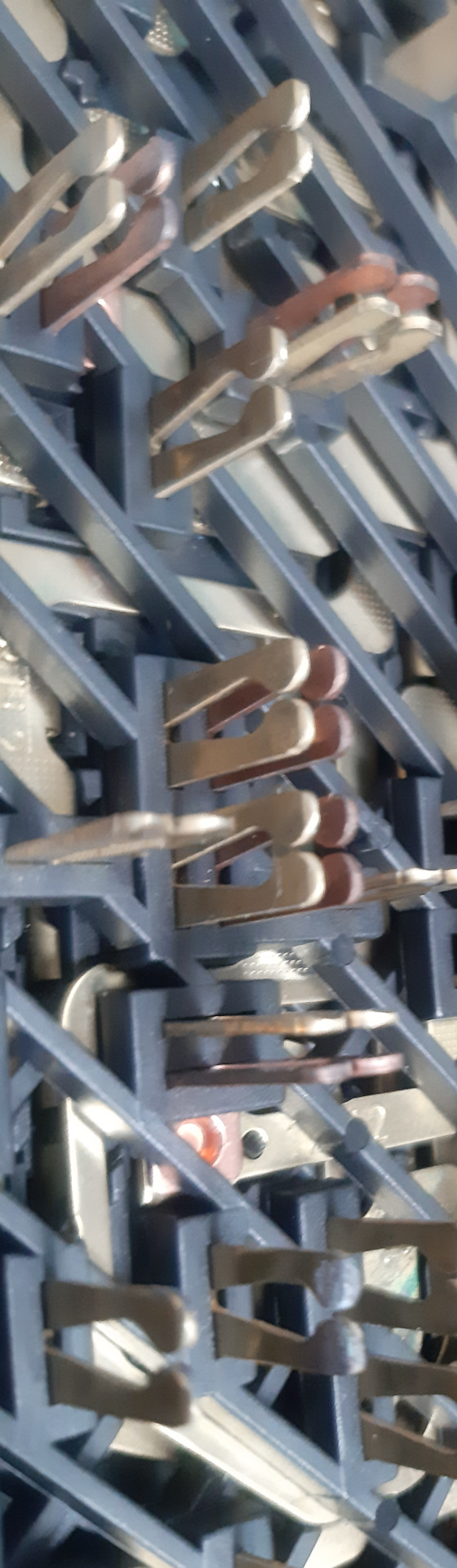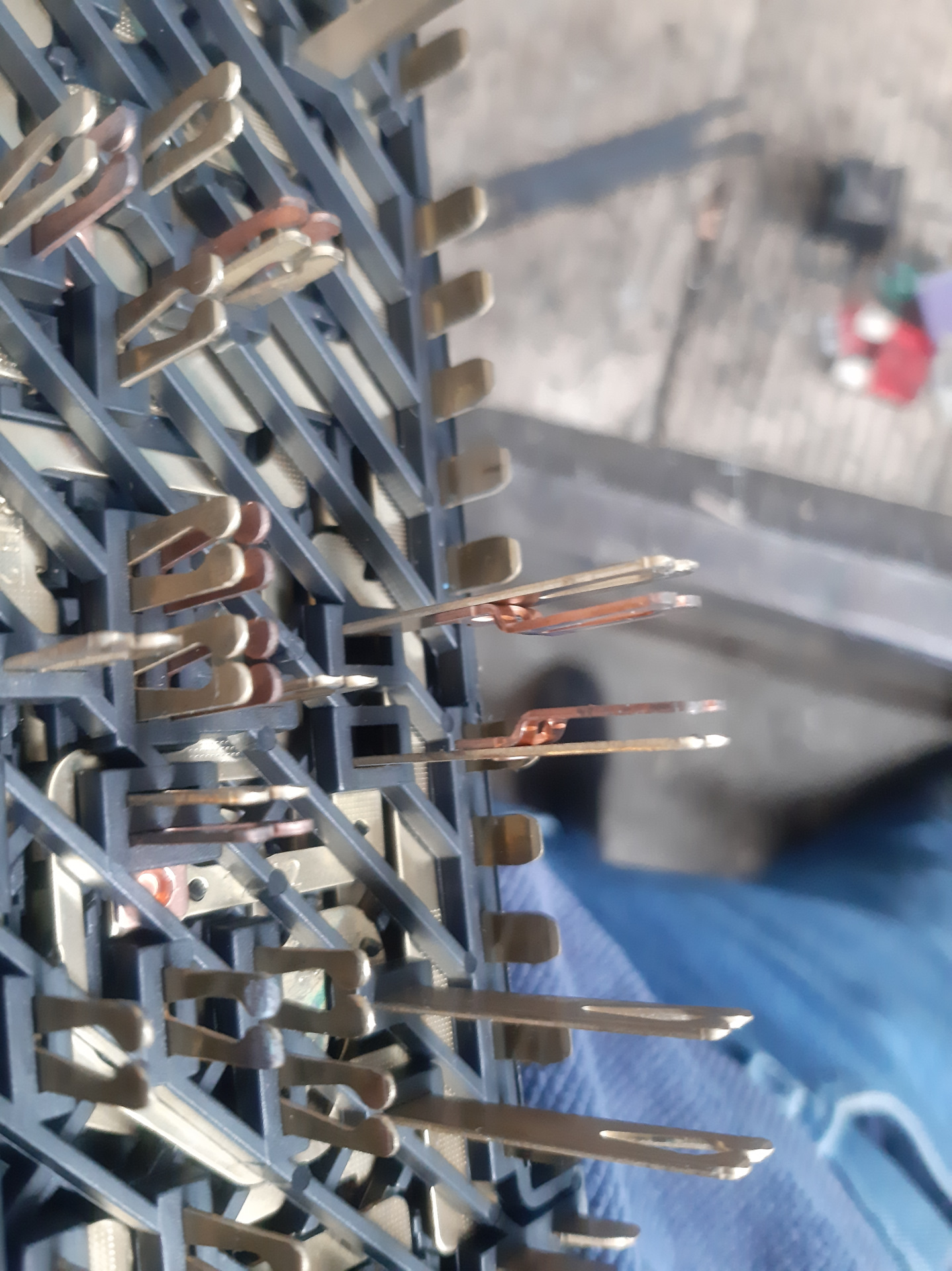 далее снимаем второй ярус тянем пластиковую сетку и с ней снимаем контакты которые тянутся сней, не вынимая кнтакты с сетки ставим её в сторонку!