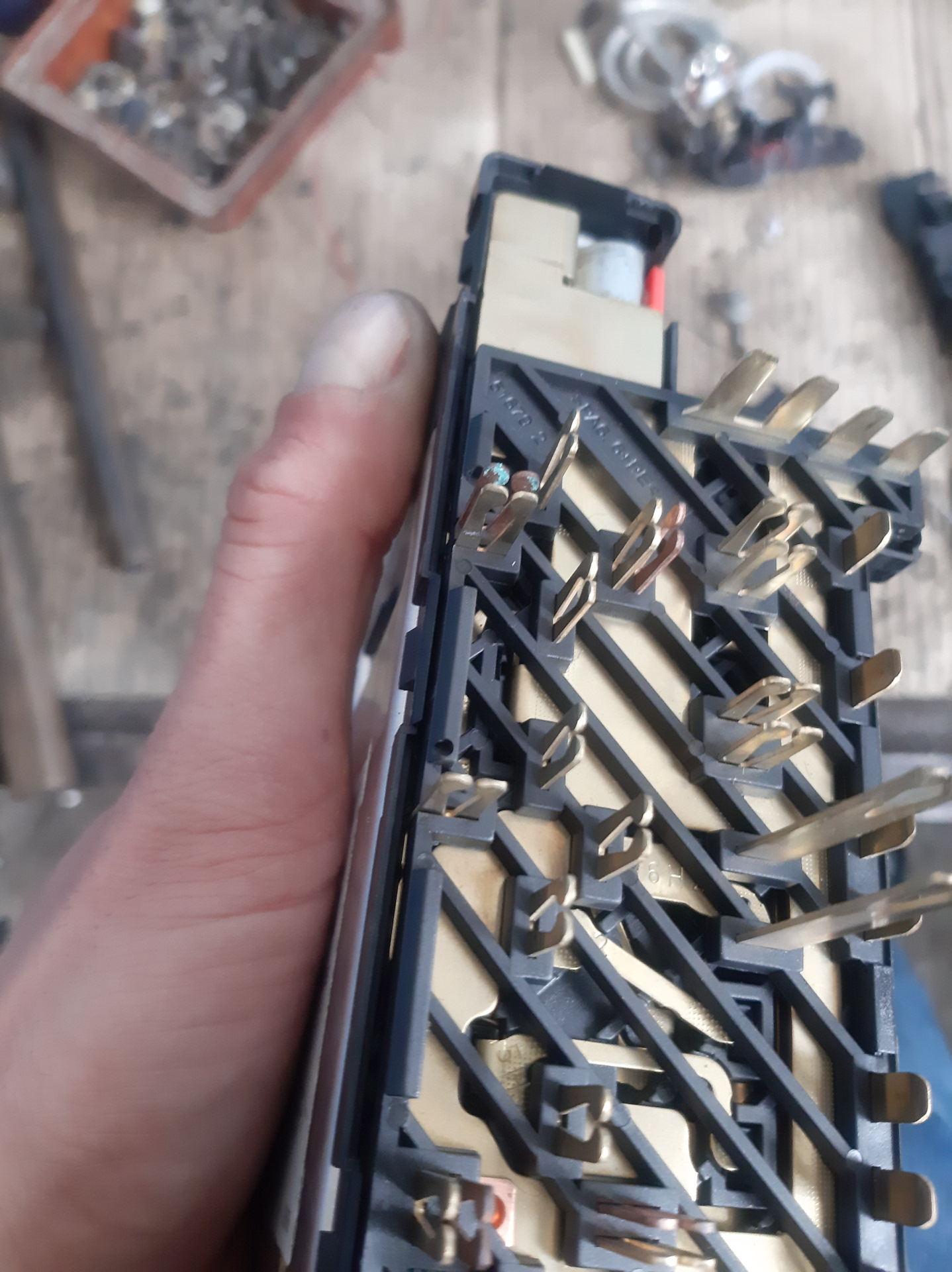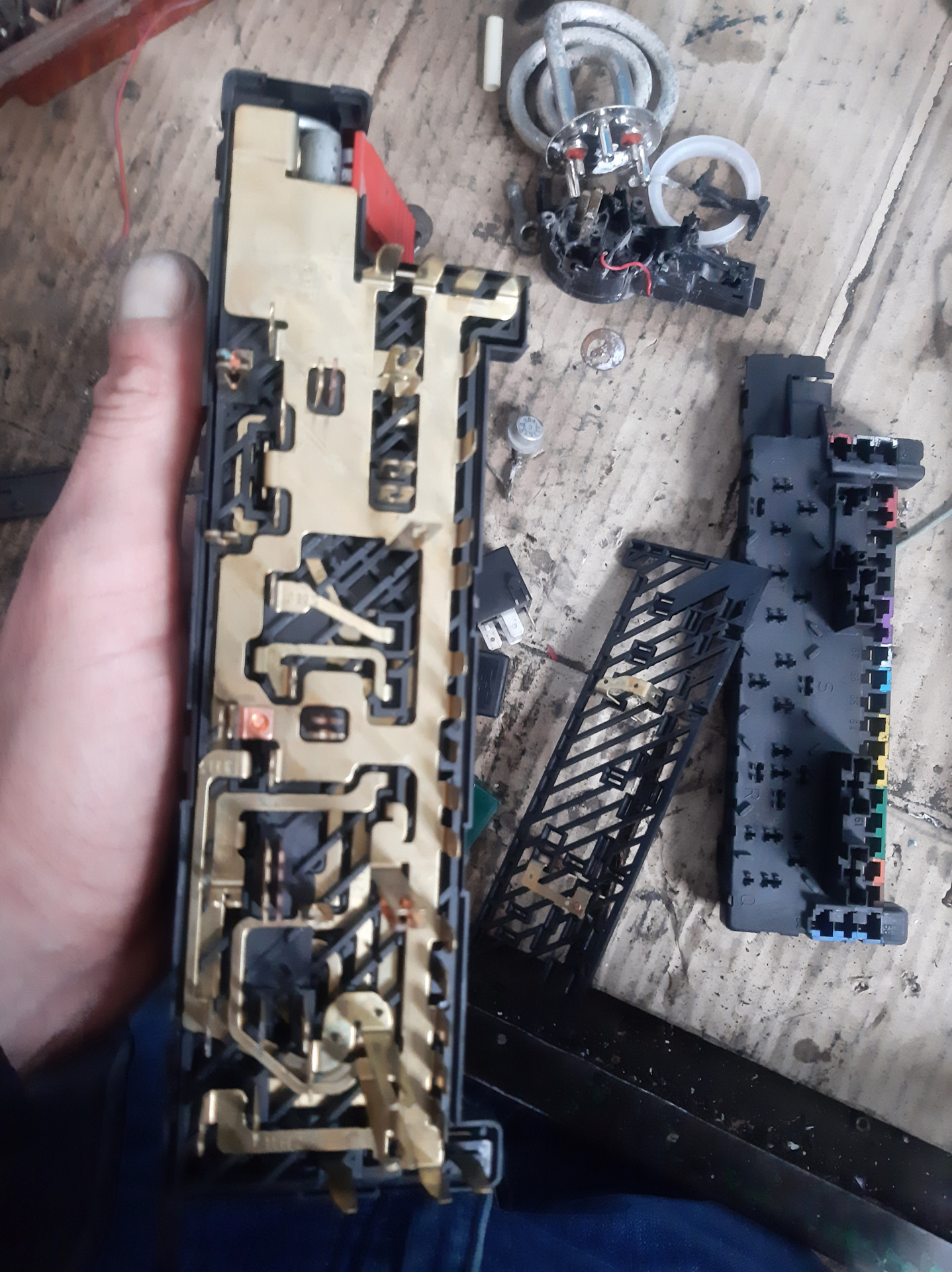 Далее снимаем самою большую дорожку не спутаете😆 и обращаем внимание как стояла защёлка плюсовой клемы лучше сфоткать!