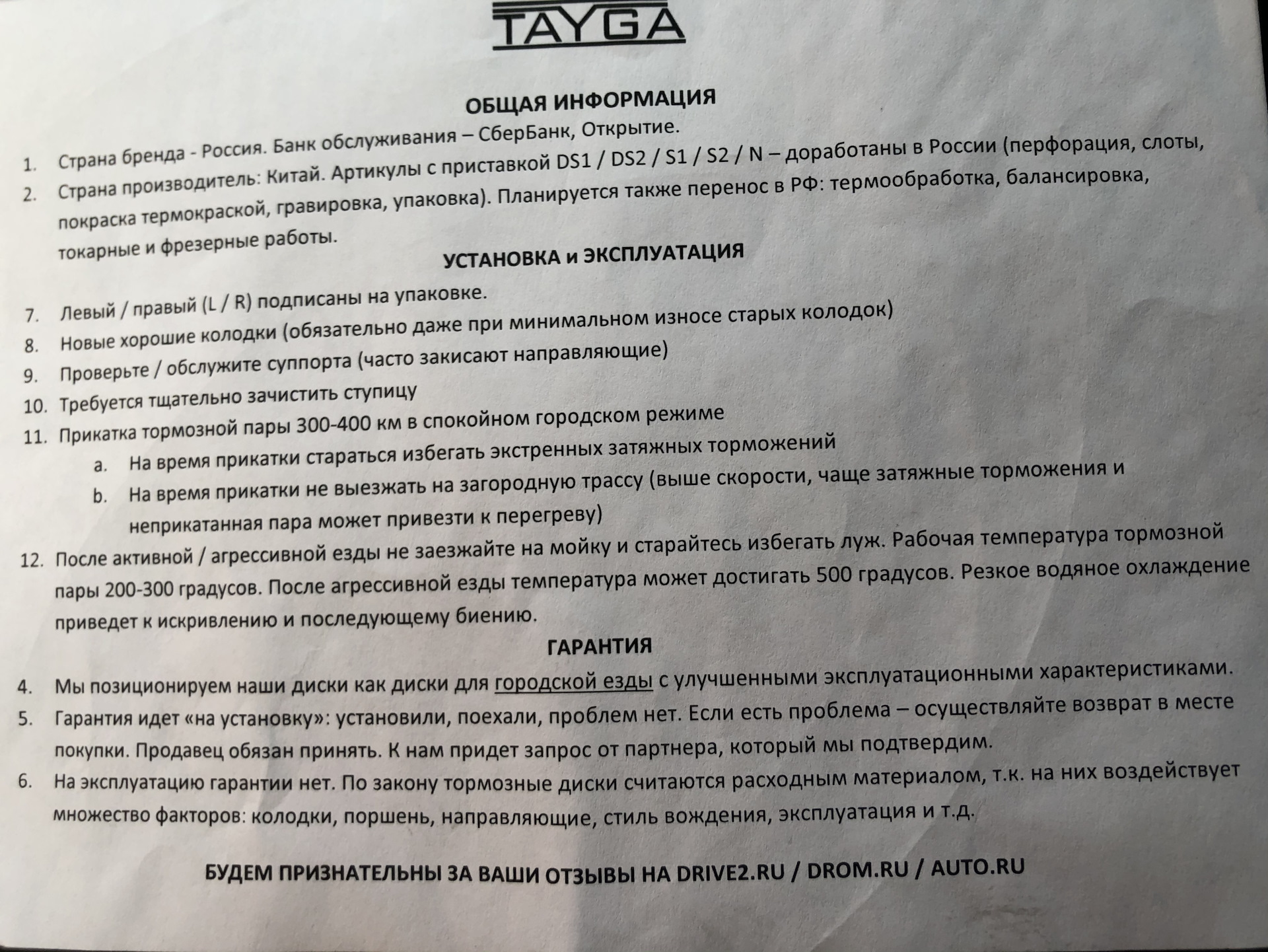 Ставил Тайгу на прежнюю машину, при торможении со скоростей более 100 км/ч шум от перфов или слотов…так и не выяснил — продал машину.