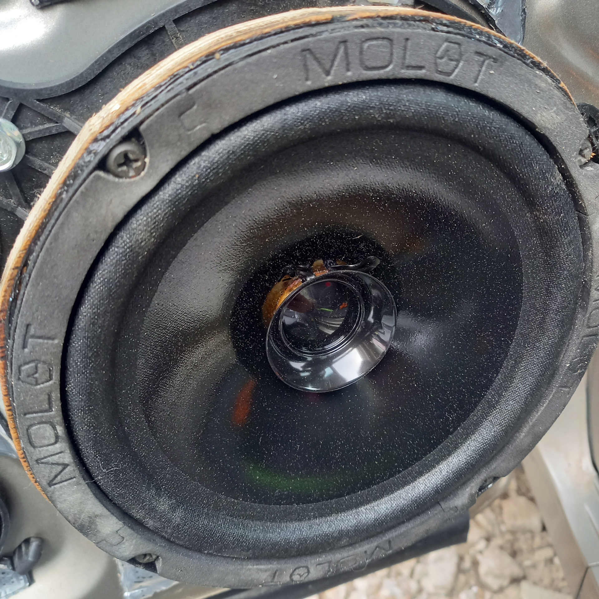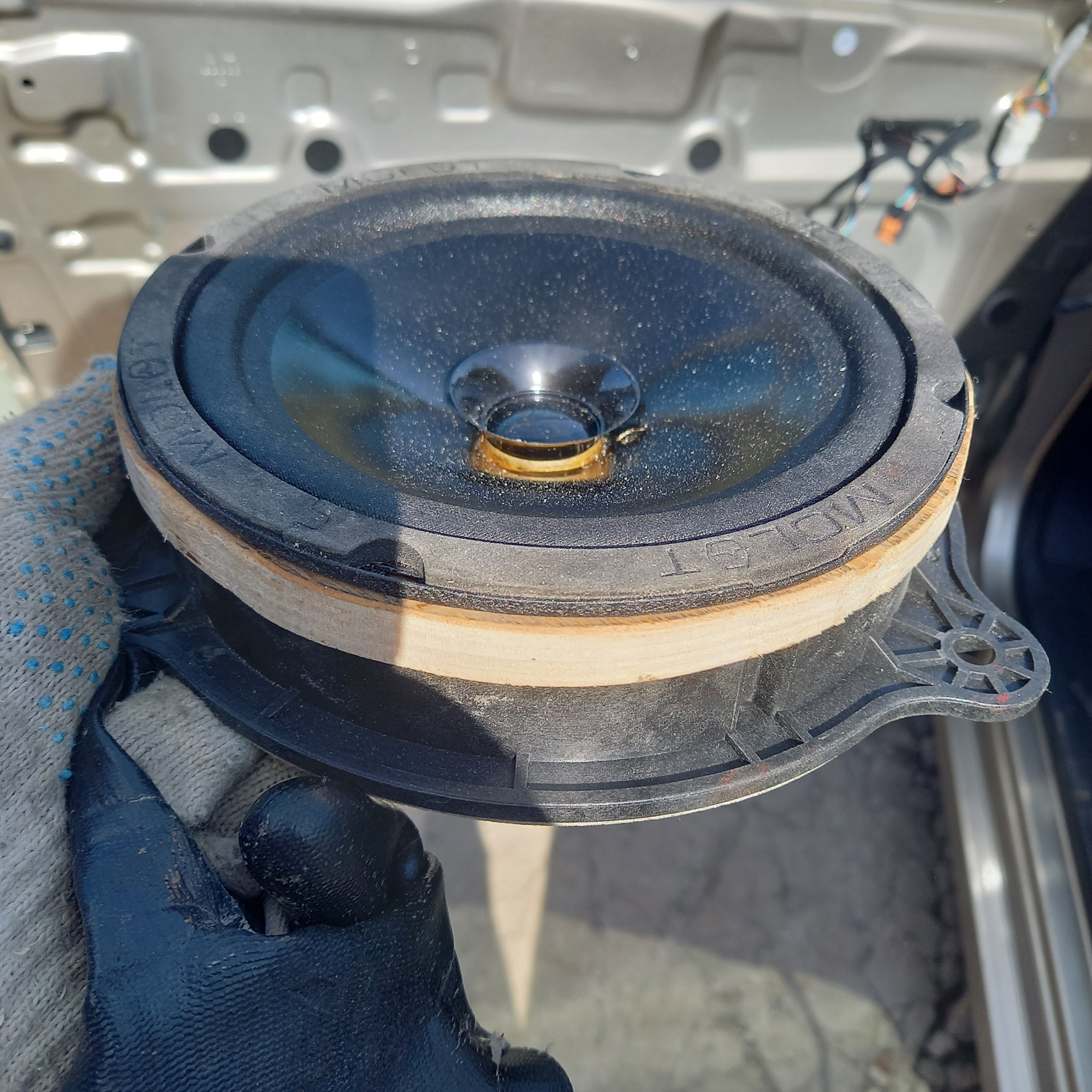 А вот какой мощности и сопротвления штатные колонки найти не удалось. Штатные 20w на 4Ом, диаметр 160 мм, были заменены на урал молот 90w.