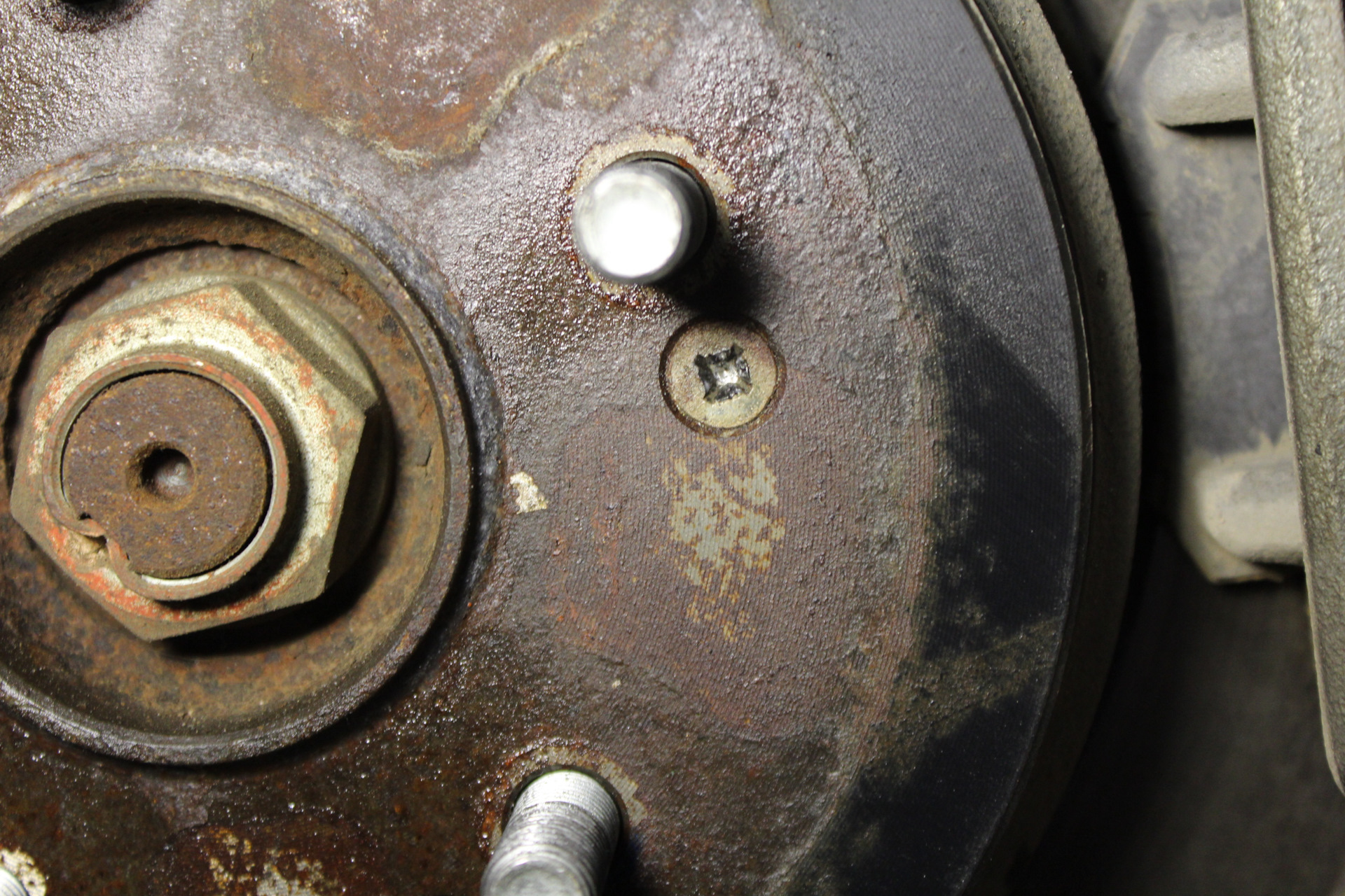 Когда устанавливал тормозной диск, то удивился, что окошко с резиновой заглушкой не совпало с нижним винтом регулировки тормозных колодок ручника, но потом понял, что диск крутится, а колодки стоят стационарно:))) Т.е. окошко всегда можно подогнать к винту регулировки.