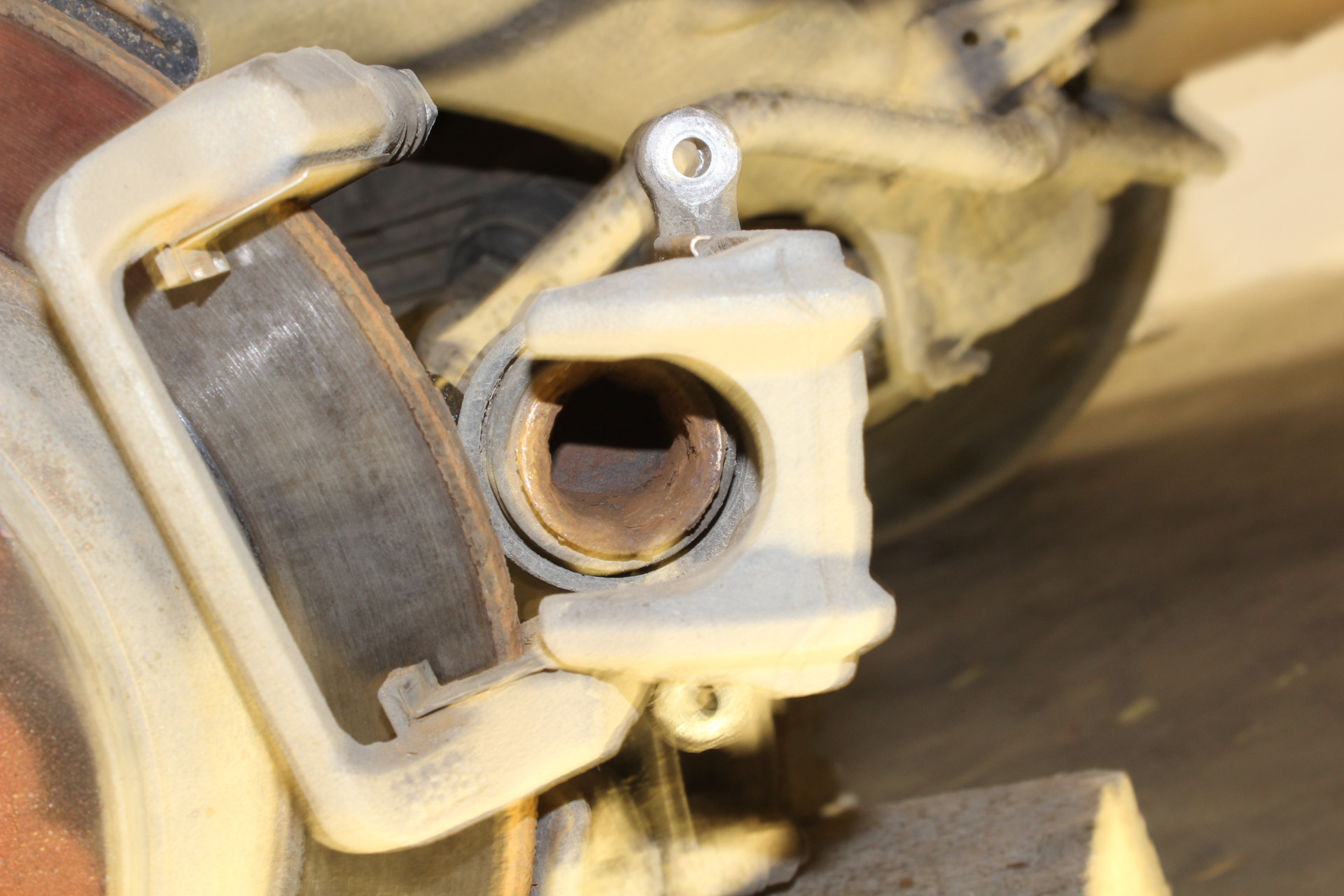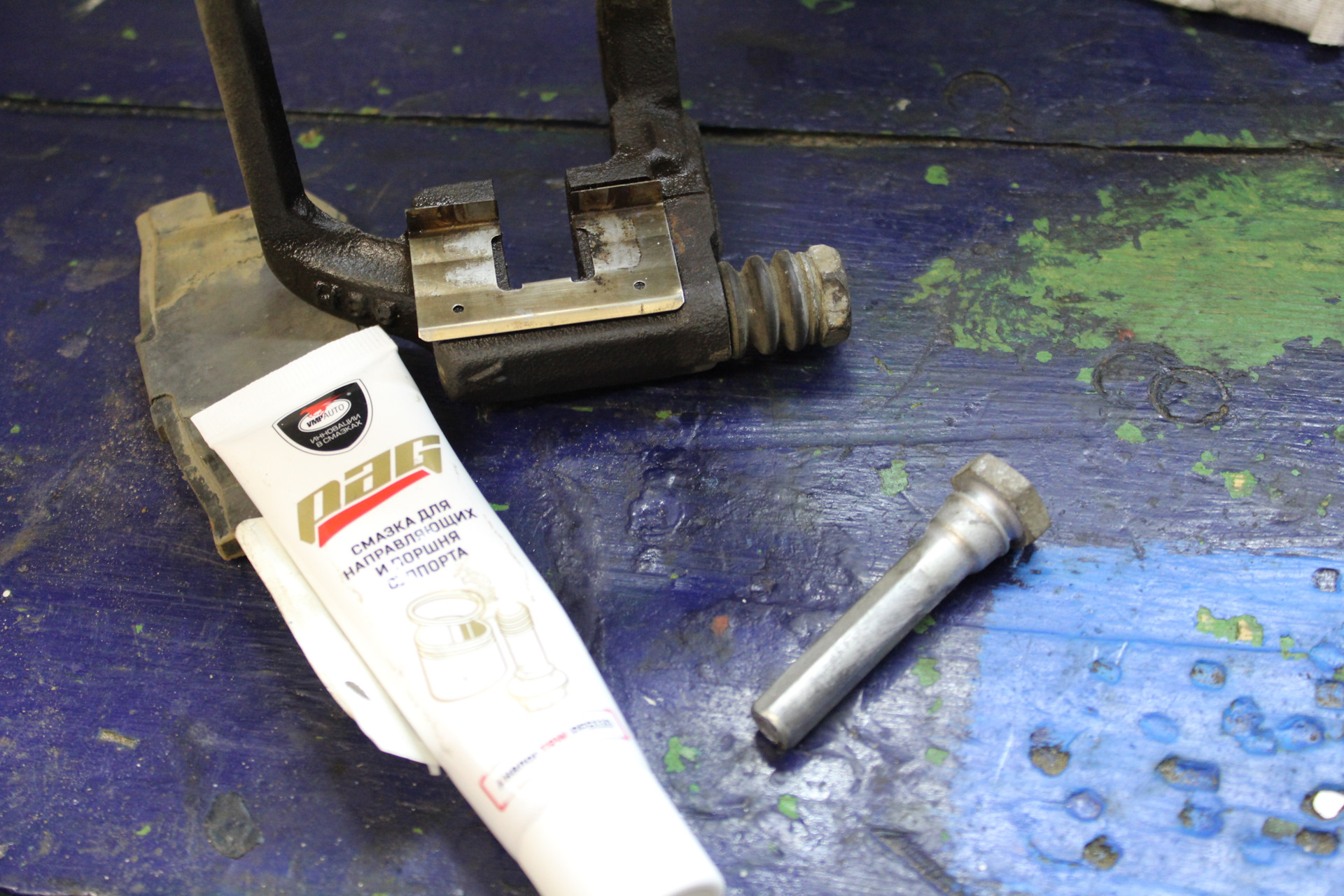Попутно был смазаны направляющие тормозного суппорта. Хотя там было еще много родной смазки, следов ржавчины не было.