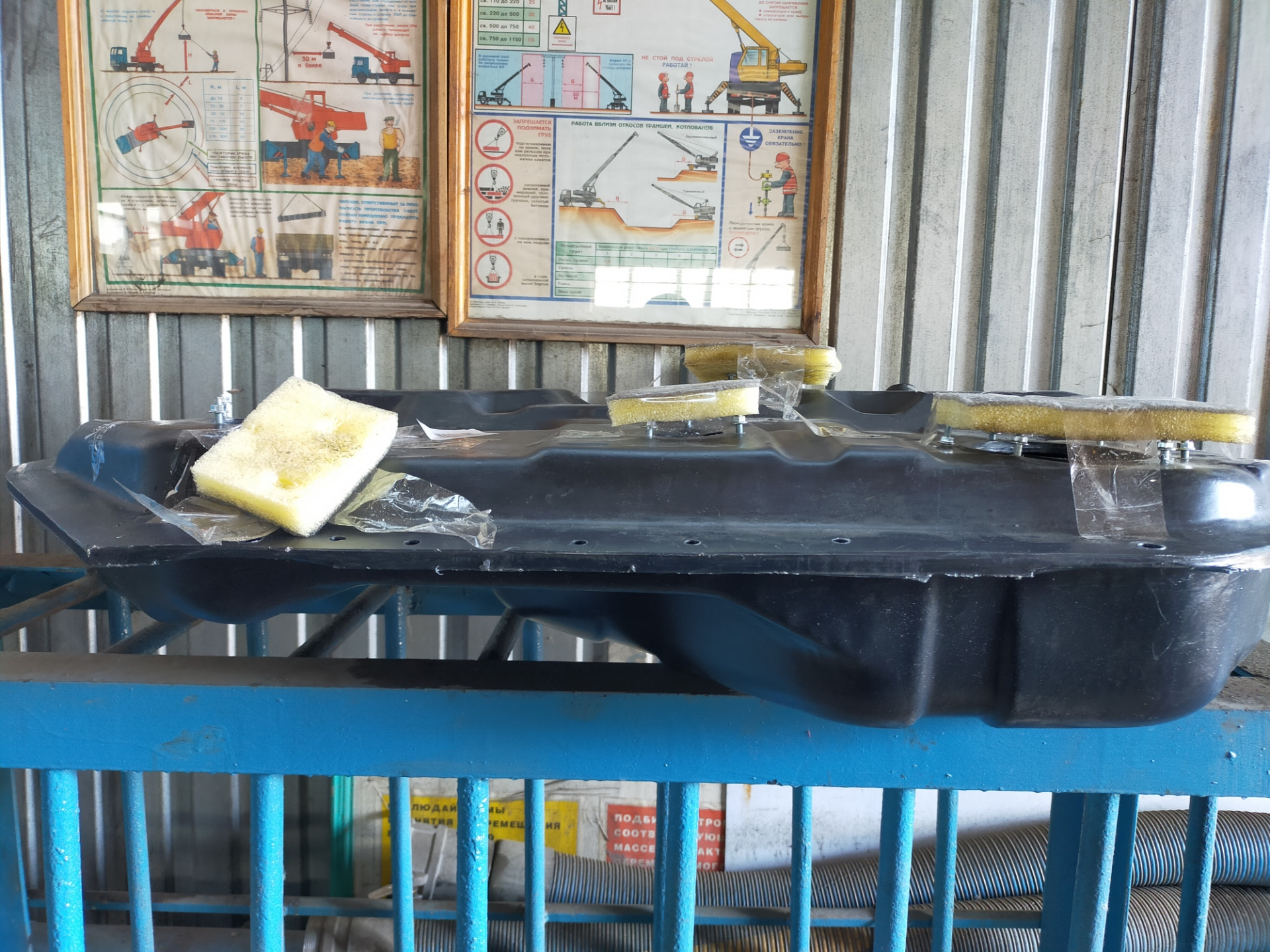 Бак встал на место относительно без проблем. За исключением одного угла, пришлось подпилить. Стенки очень толстые порядка 8-10 мм.