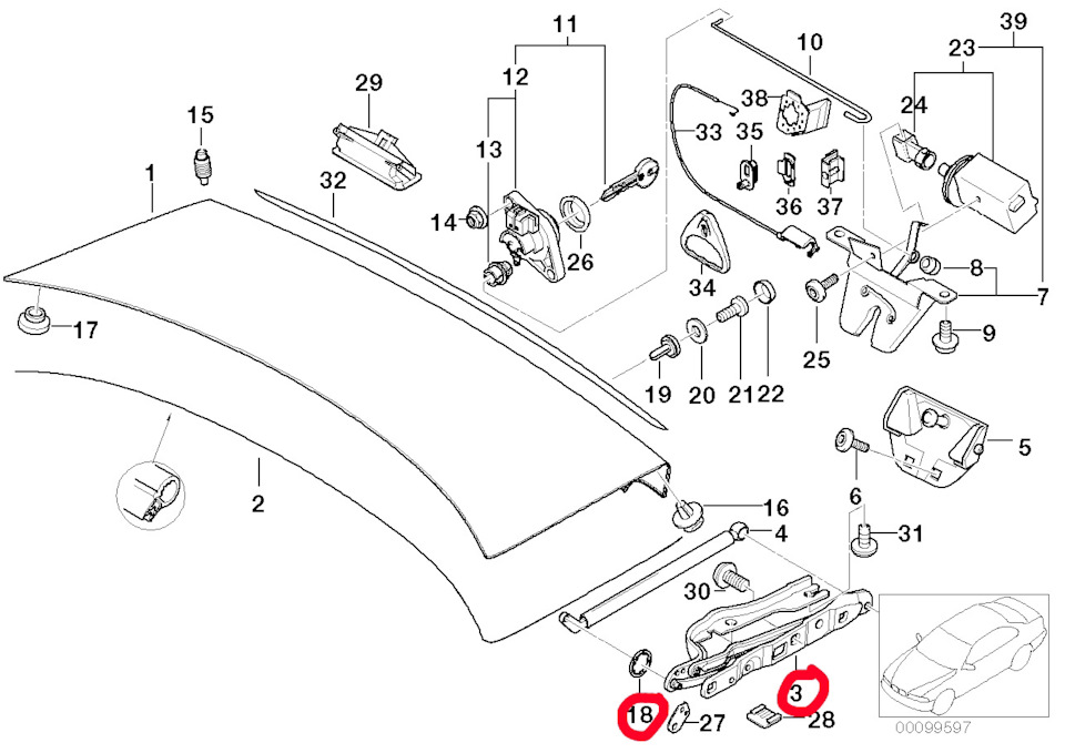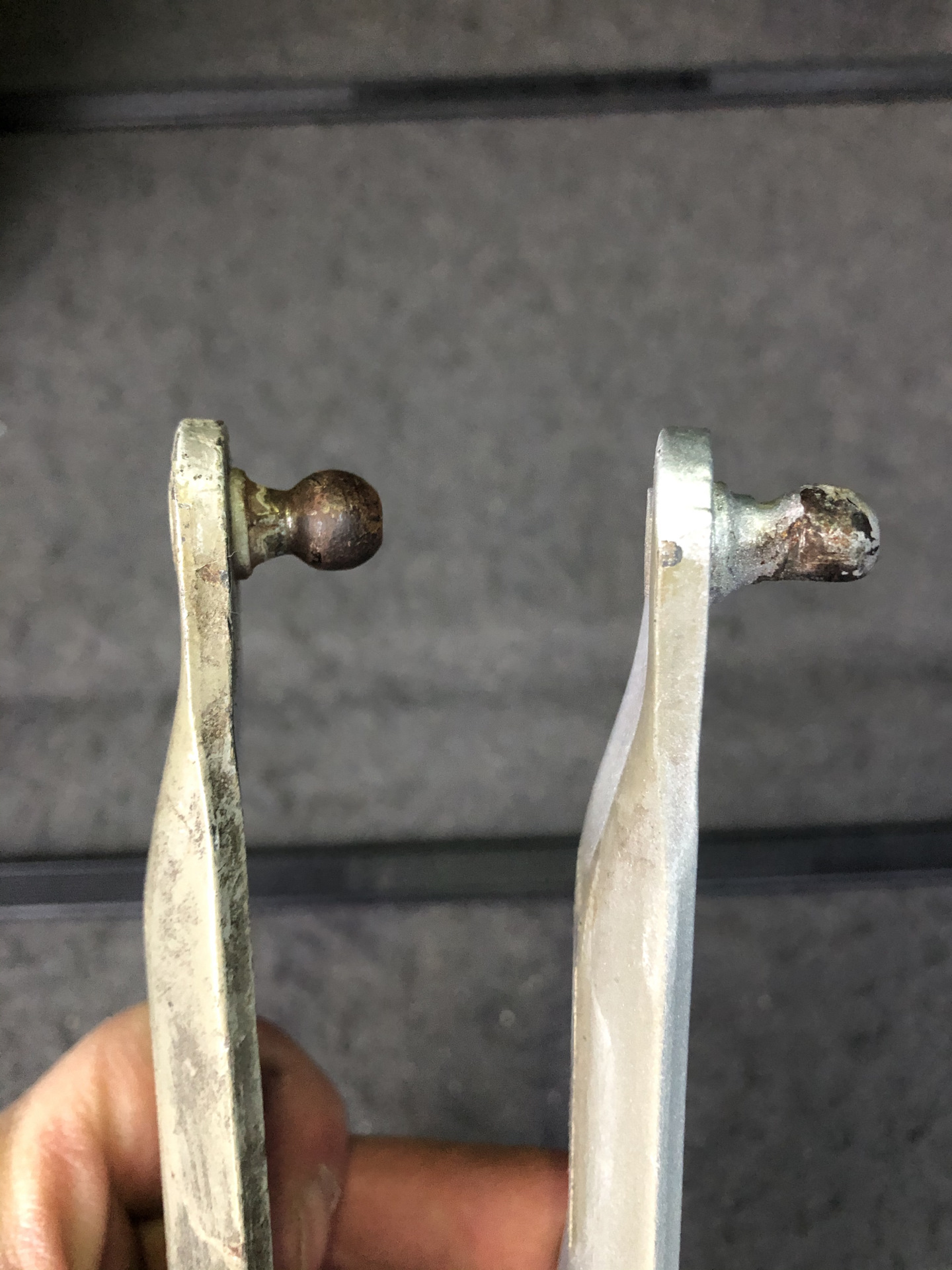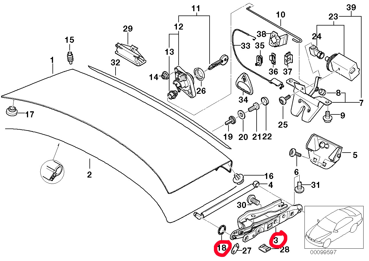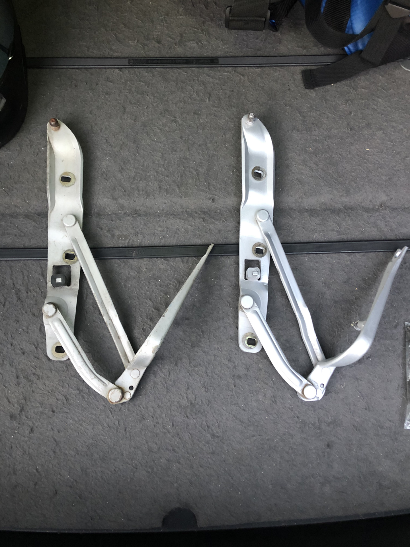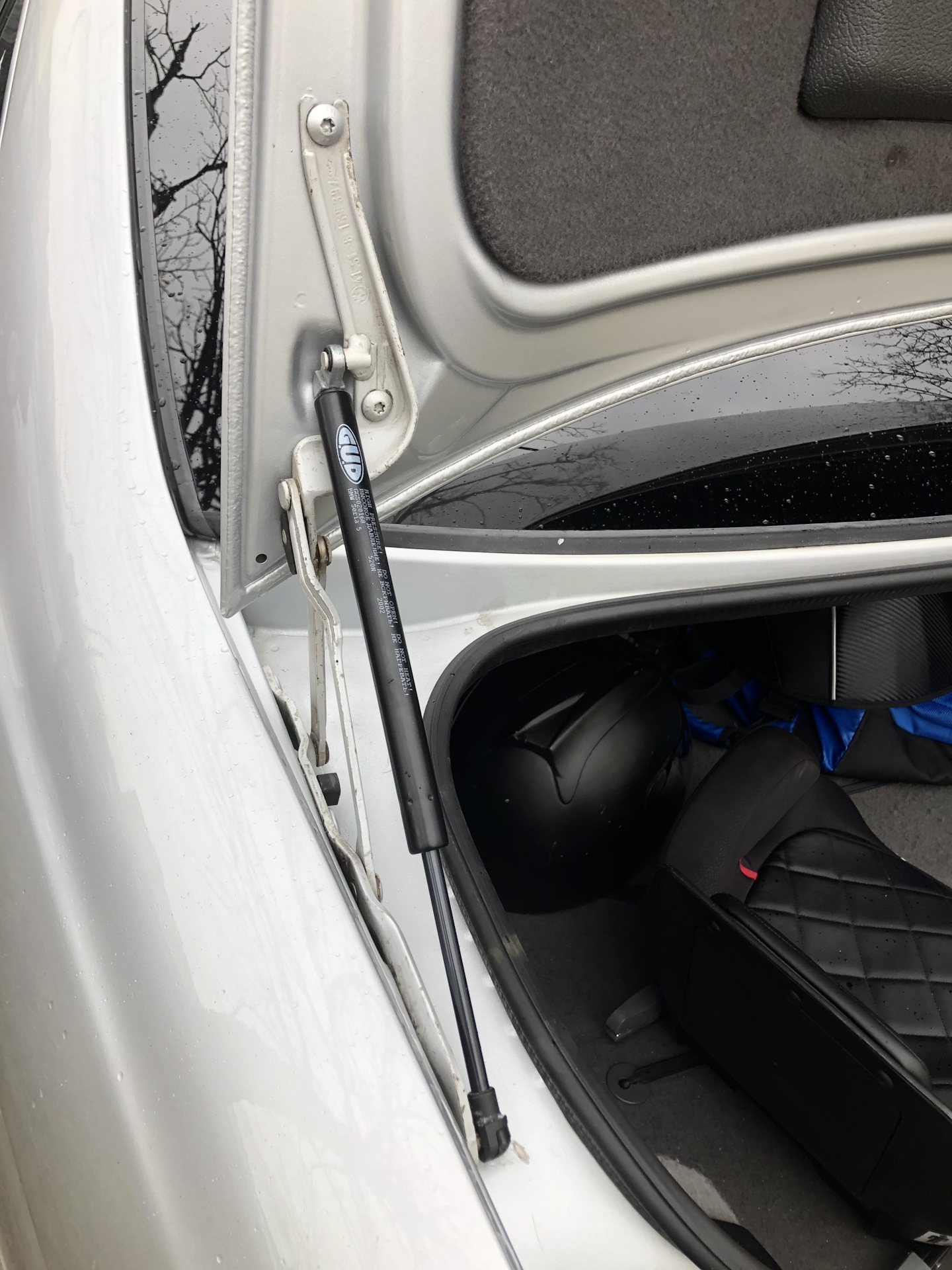 Проблема уже давно меня проверяла на прочность. Левый амортизатор крышки багажника, все чаще начал соскакивать в нижнем стыке с завесой; Причина — выработка места стыка.