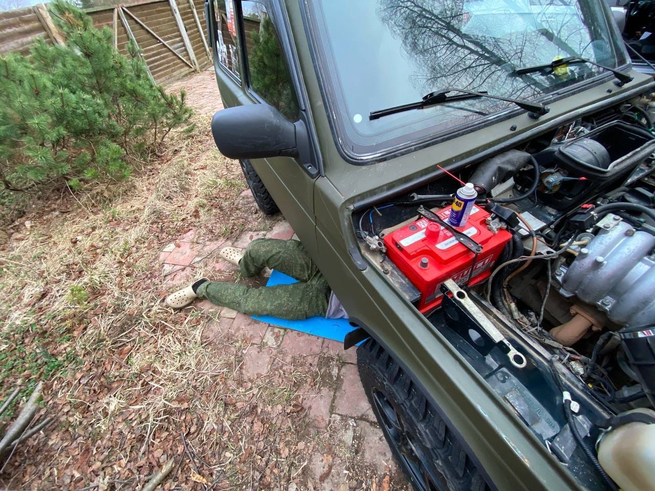 4. А кто сказал, что будет просто? 2 ранее открученных болта крепления стартера вышли с резьбой. Ищем в