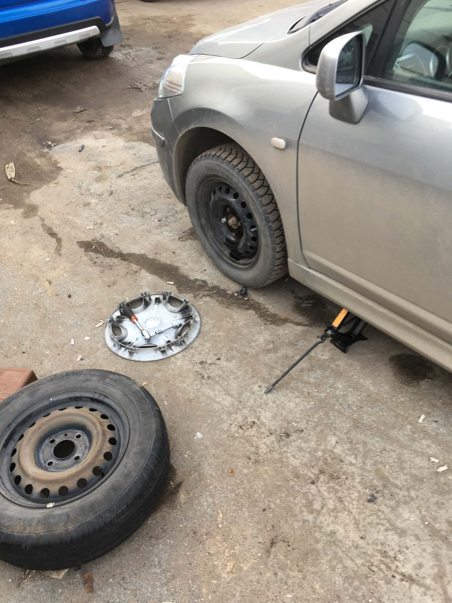 числа 15 апреля, решил что пора вставать в "лето" благо с покупкой машины, были и летние шины/диски. осмотрев их, одну шину бывшее переднее поставили назад, как немного протерлась, остальные в хорошем состоянии. Небольшие муки переобувания и все готово, правда потратил 2,5 часа, так как делал для себя, все промазал, почистил, очень туго шли гайки, немного помучатся пришлось, заодно и осмотрел колодки, до зимнего перобувания дотянут, там и замена их предстоит, одна уже поскрипывает при торможении, иногда бесит