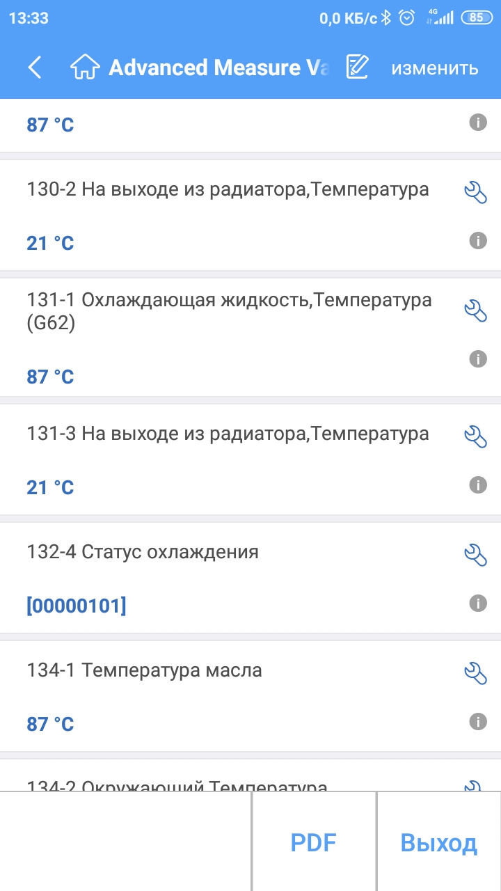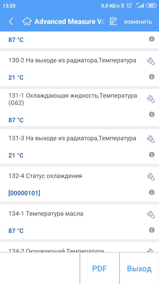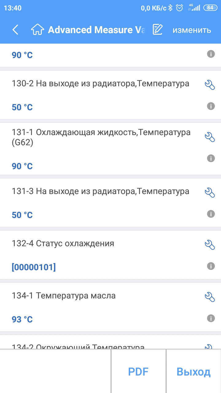 У меня выход из радиатора показывала только vcds на ноутбуке.