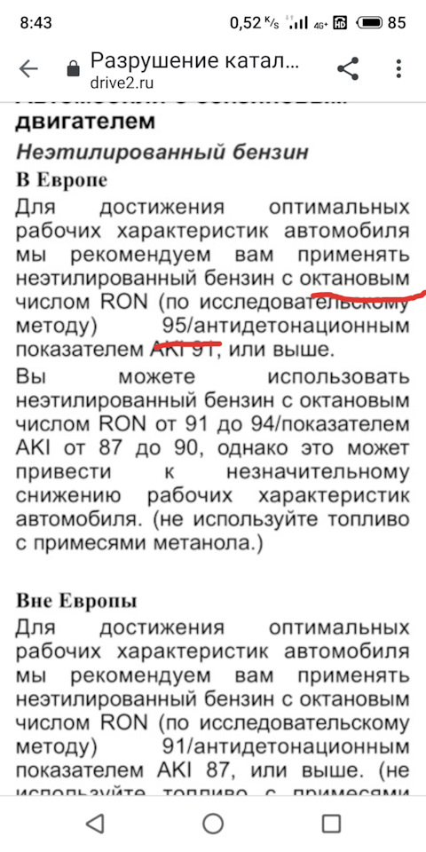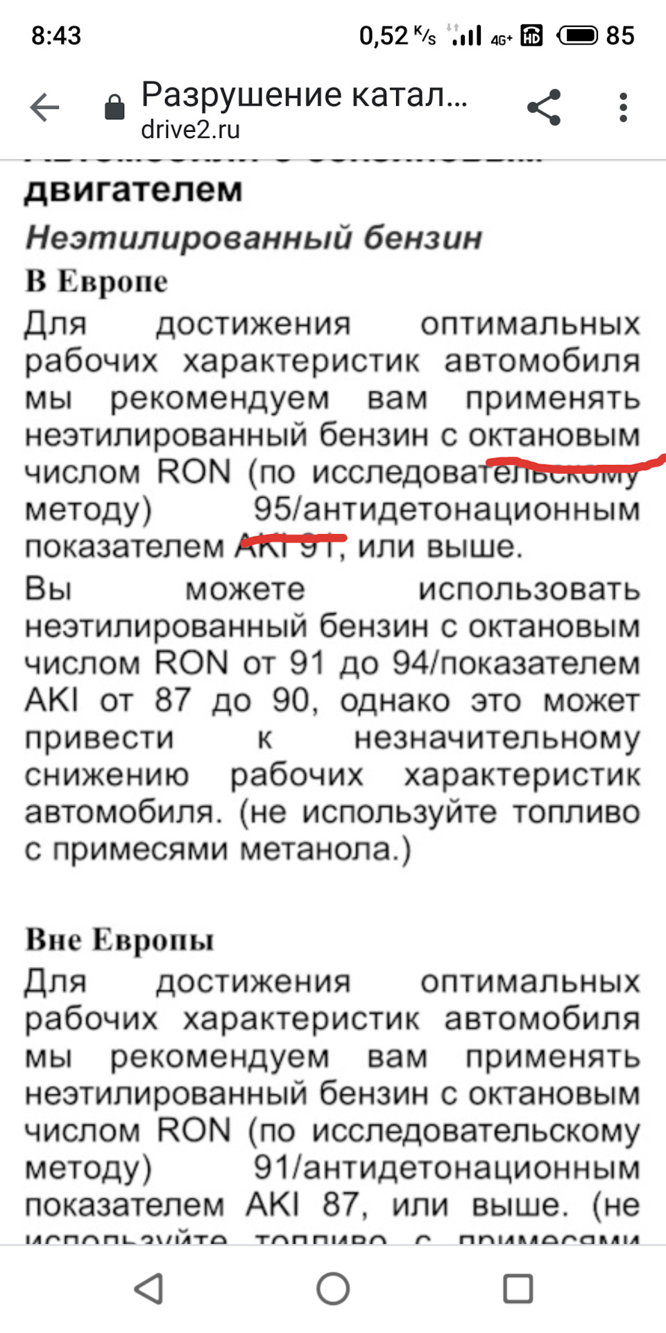 Можно лить но если он очень качественный! И без присадок, вам говорили что раньше из 80 делали 92, вот и я про это и толкую! Лить только 95 написано в инструкции это очевидно! Для Америки 91 это 95! Сейчас 92 это тот же самый 80 с присадками дешевый бензин, скупой платит трижды!