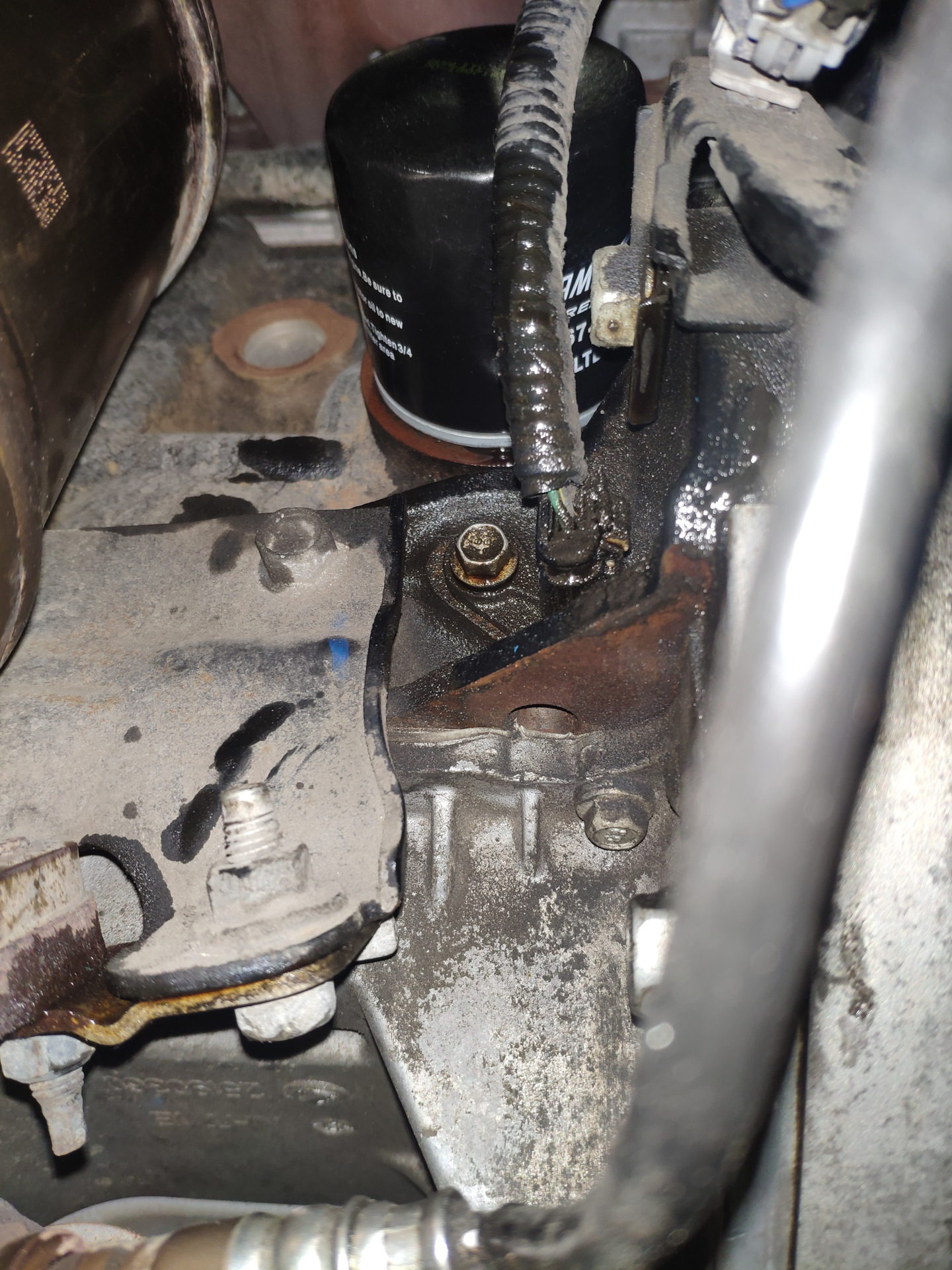 Вот он, сам в руки идет, откручивай на здоровье! Ан нет! Расположен наш фильтрец прямо скажем неудачно, вокруг много датчиков, провода, ровно под фильтром находиться я так понял датчик оборотов коленвала, капец какое шикарное решение!