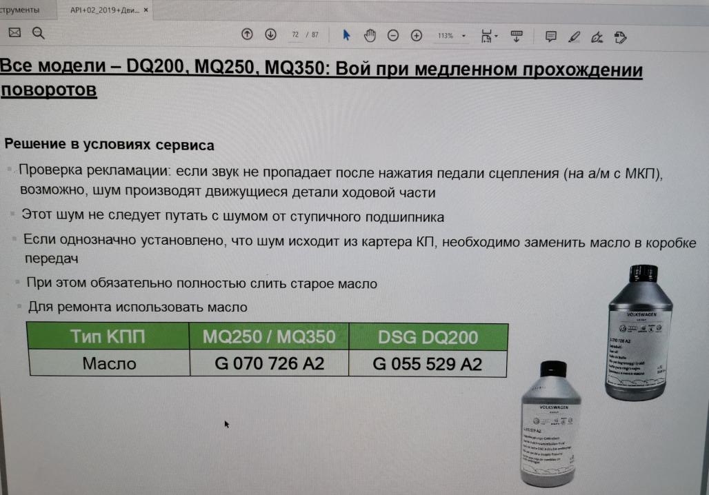 А вообще масло G055529A2 которое залили автору используется для МОКРОЙ DSG 7 (DQ381), но в качестве официального устранения воя можно залить и в DQ200.