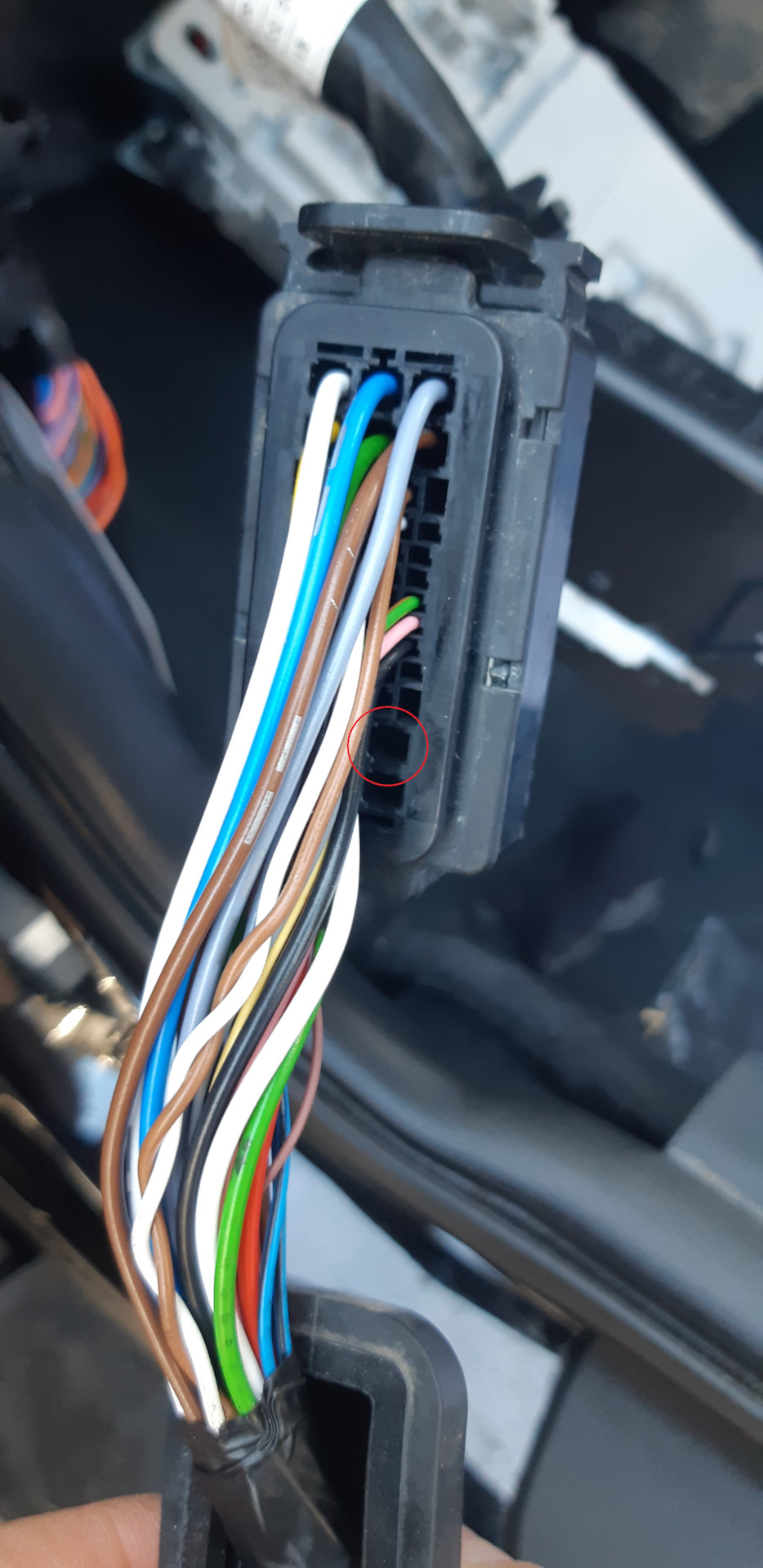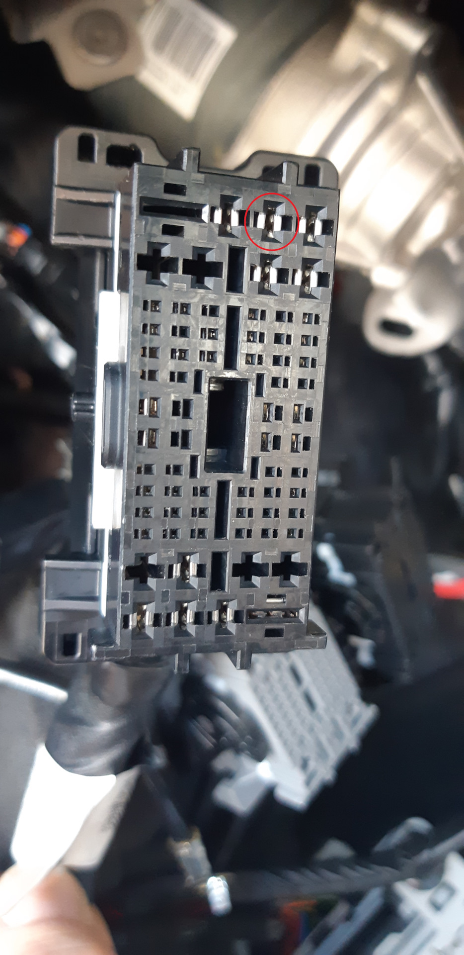 Далее снимаем разъём I/P-B (расположен на панели предохранителей), разбираем его и согласно схемы вставляем контакт 1-968851-1, предварительно обжав его на проводе.