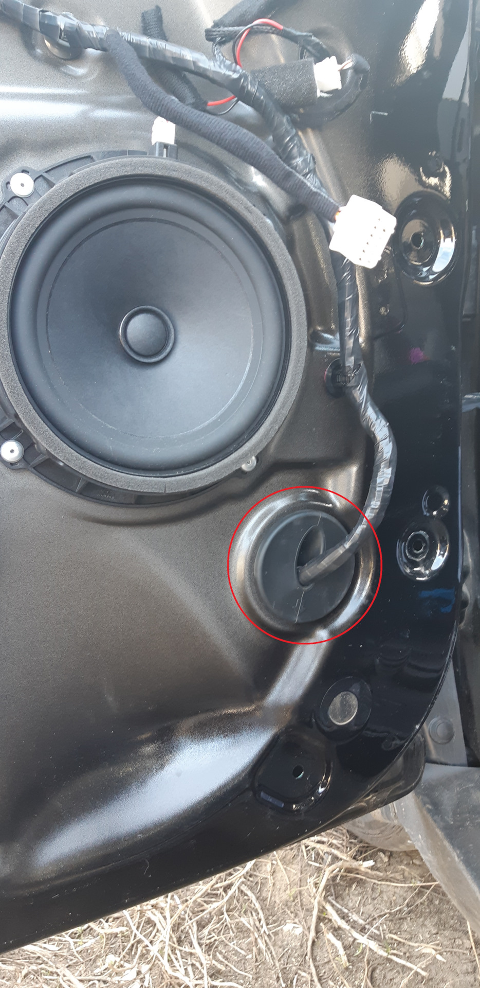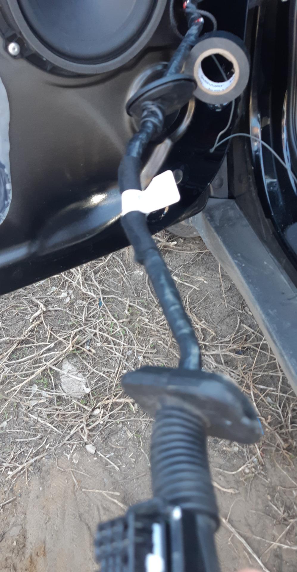 Провод от разъёма жгута водительской двери в дверь прокладывал так же вдоль заводского жгута, предварительно вытащив весь жгут через отверстие под колонкой.