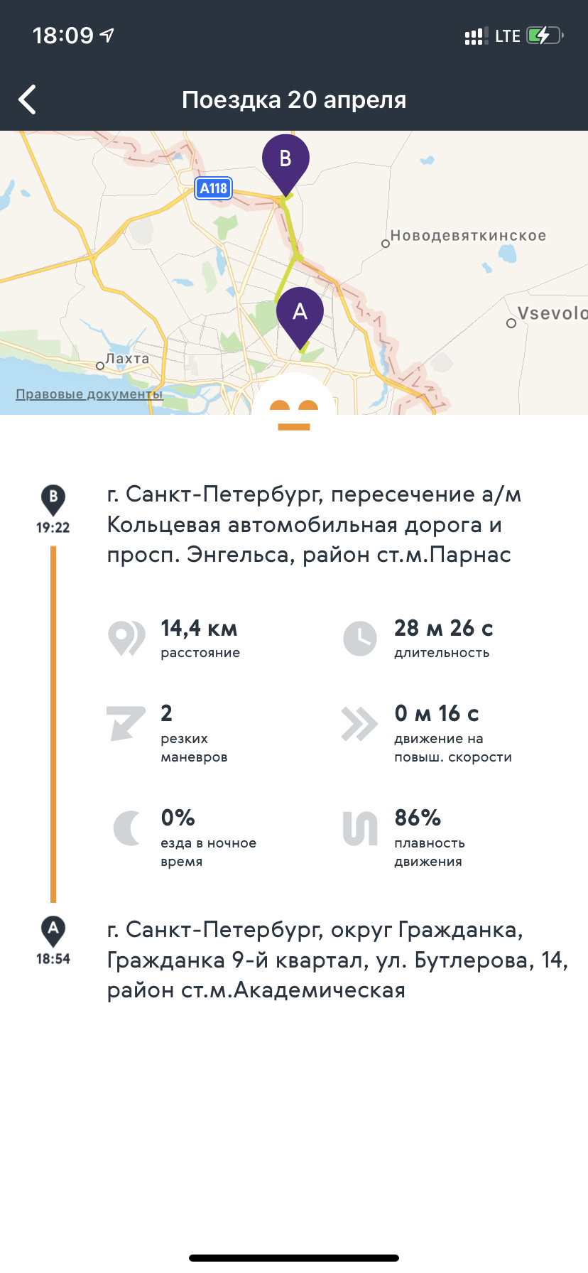 Кстати, у меня в авто тоже стоит такой прибор, но результат показывает в процентах. Если 90 и более, то это признак мегаправильного водителя. Так вот тут я основательно похулиганил на м-11 и получил оценку 96%, а в обратную сторону ехал по на круизе 110 и получил 98%. а на следующий день мегаспокойно проехался по городу и получил 75%. Эти телеметрии полная хрень.